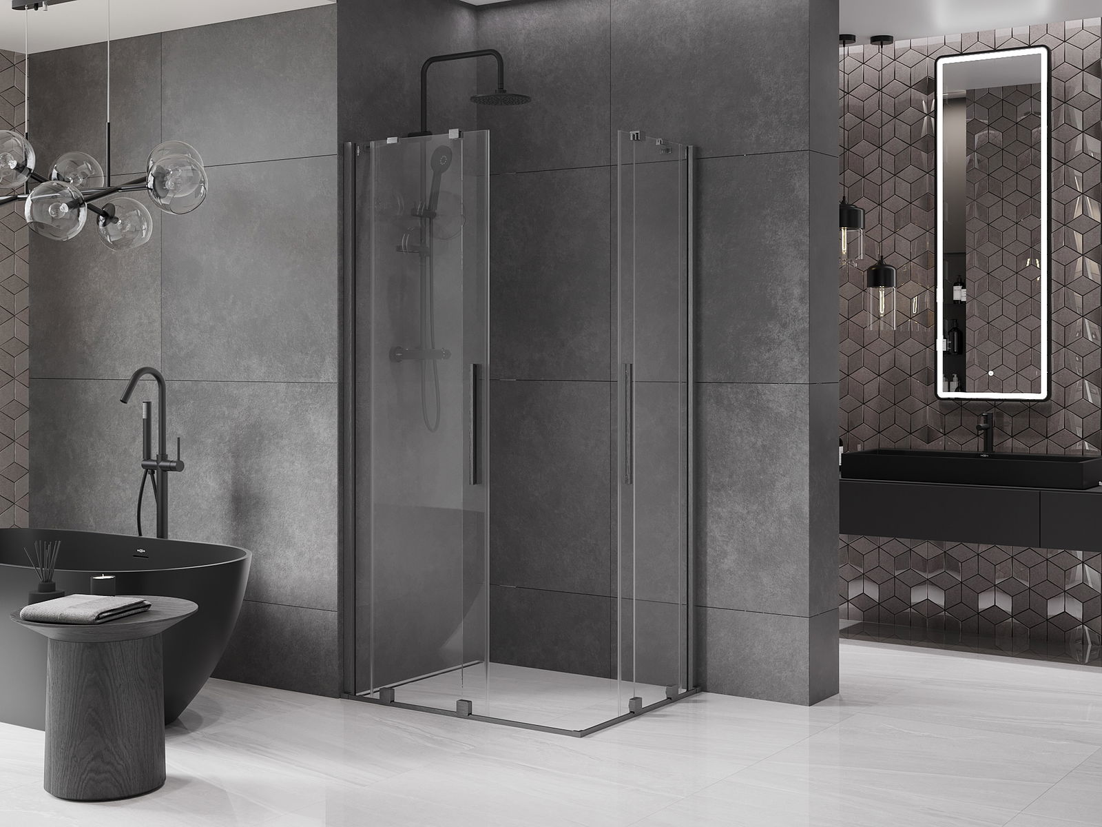 A handy and convenient handle made of stainless steel. The stylish shape combined with a finish that matches the color of the profiles gives a modern and stylish look, highlighting the aesthetics of any bathroom.