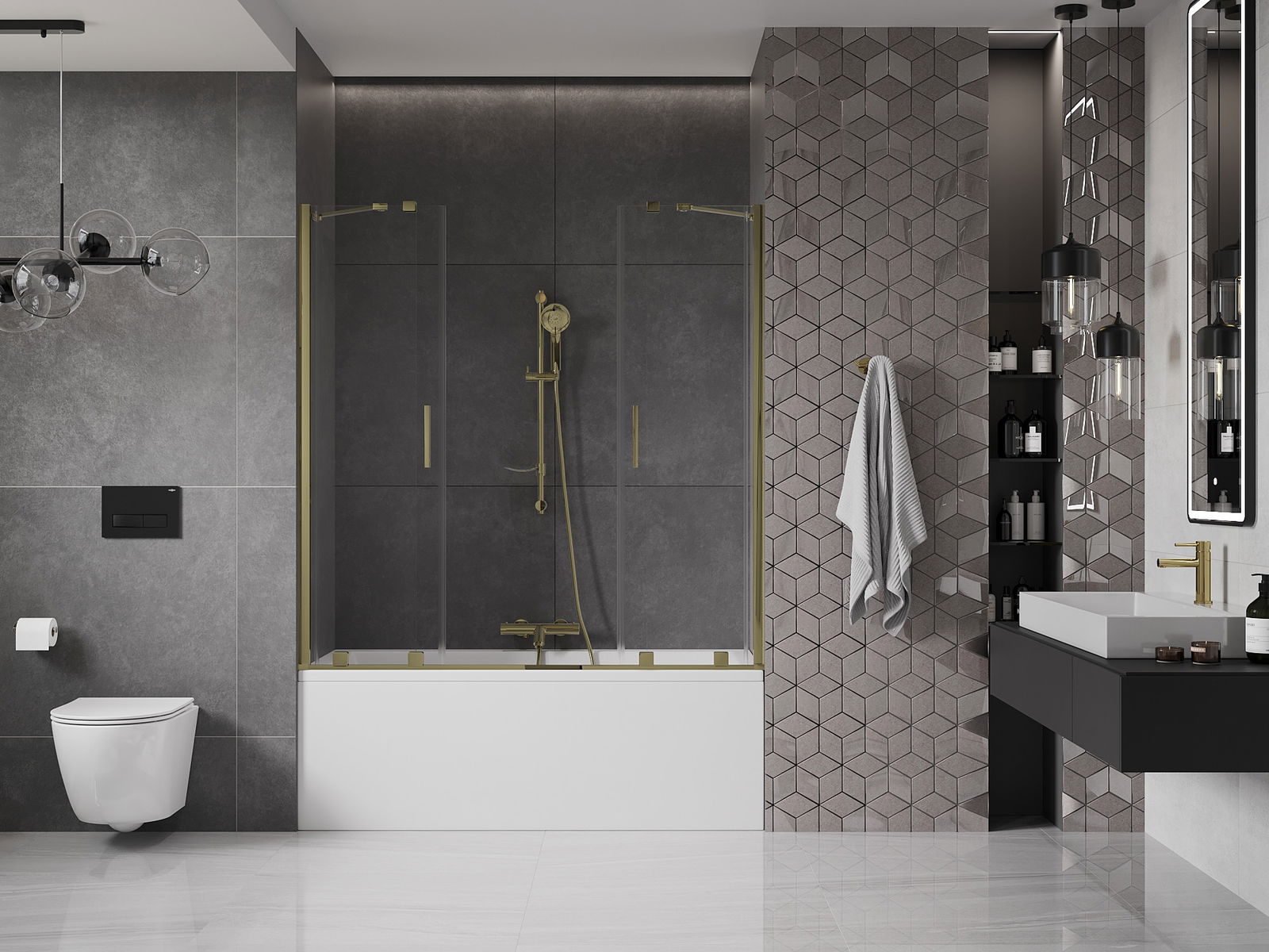 Mexen Velar Duo 2-panel Sliding Bath Screen 160 x 150 cm, Transparent, Gold - 896-160-000-02-50