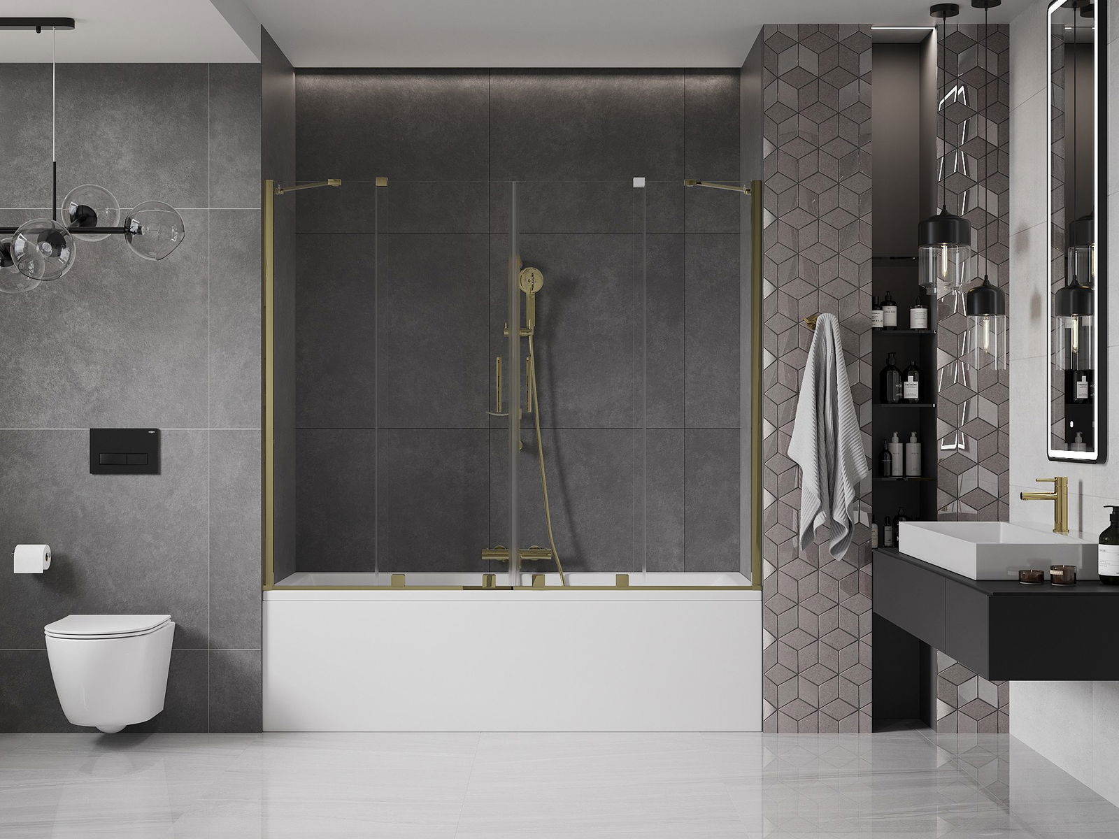 Mexen Velar Duo bath screen 2-wing sliding 170 x 150 cm, transparent, gold - 896-170-000-02-50