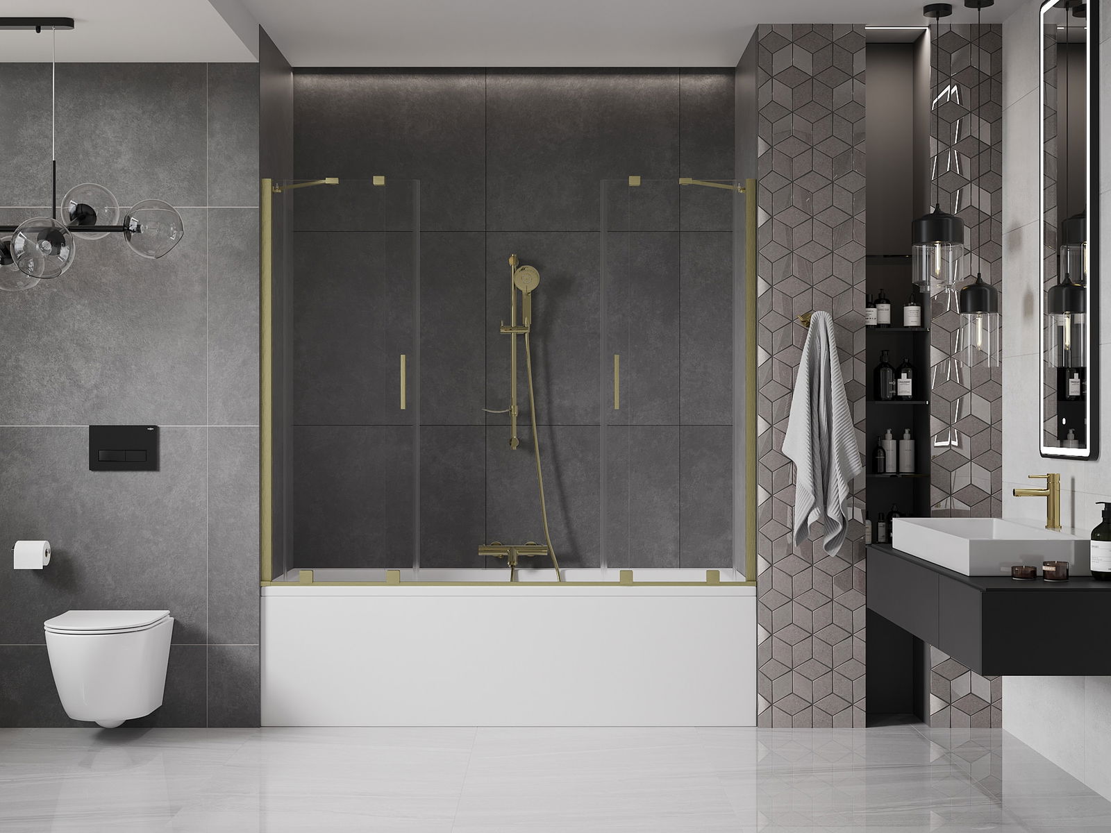 Mexen Velar Duo 2-panel sliding bathtub screen 170 x 150 cm, transparent, brushed gold - 896-170-000-02-55