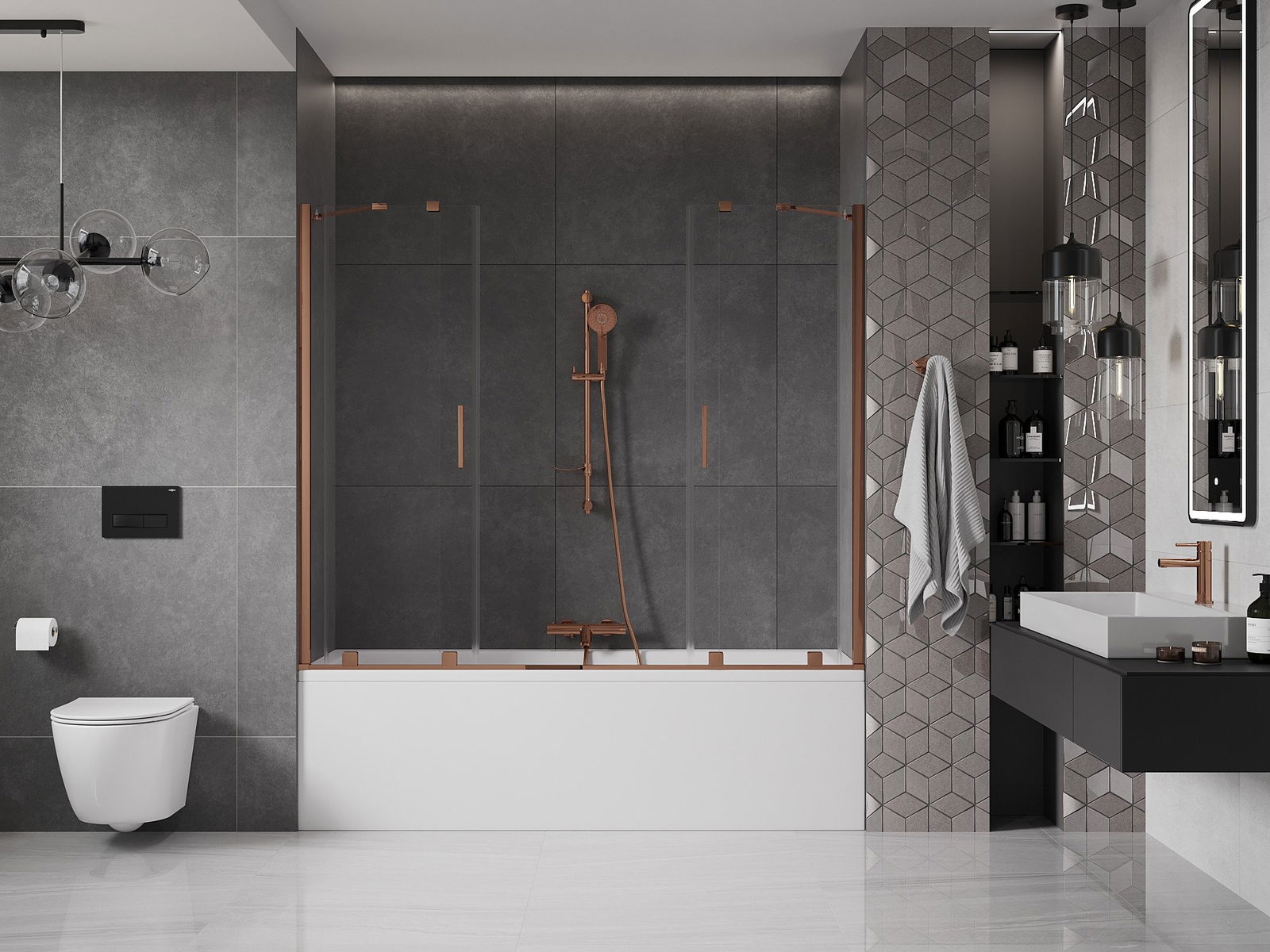 Mexen Velar Duo Two-Panel Sliding Bath Screen 200 x 150 cm, Transparent, Pink Gold - 896-200-000-02-60