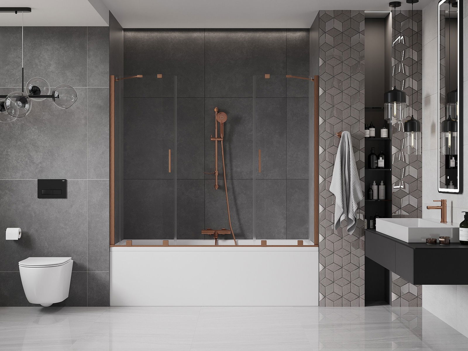 Mexen Velar Duo 2-panel Sliding Bath Screen 170 x 150 cm, Transparent, Brushed Copper - 896-170-000-02-65