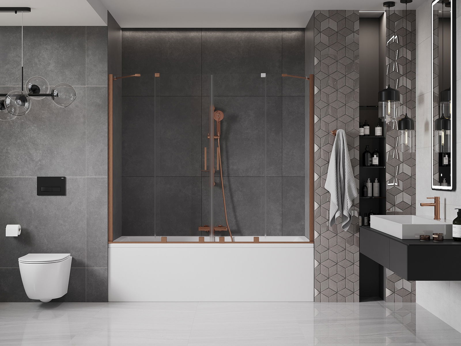 Mexen Velar Duo 2-panel sliding bath screen 180 x 150 cm, transparent, brushed copper - 896-180-000-02-65