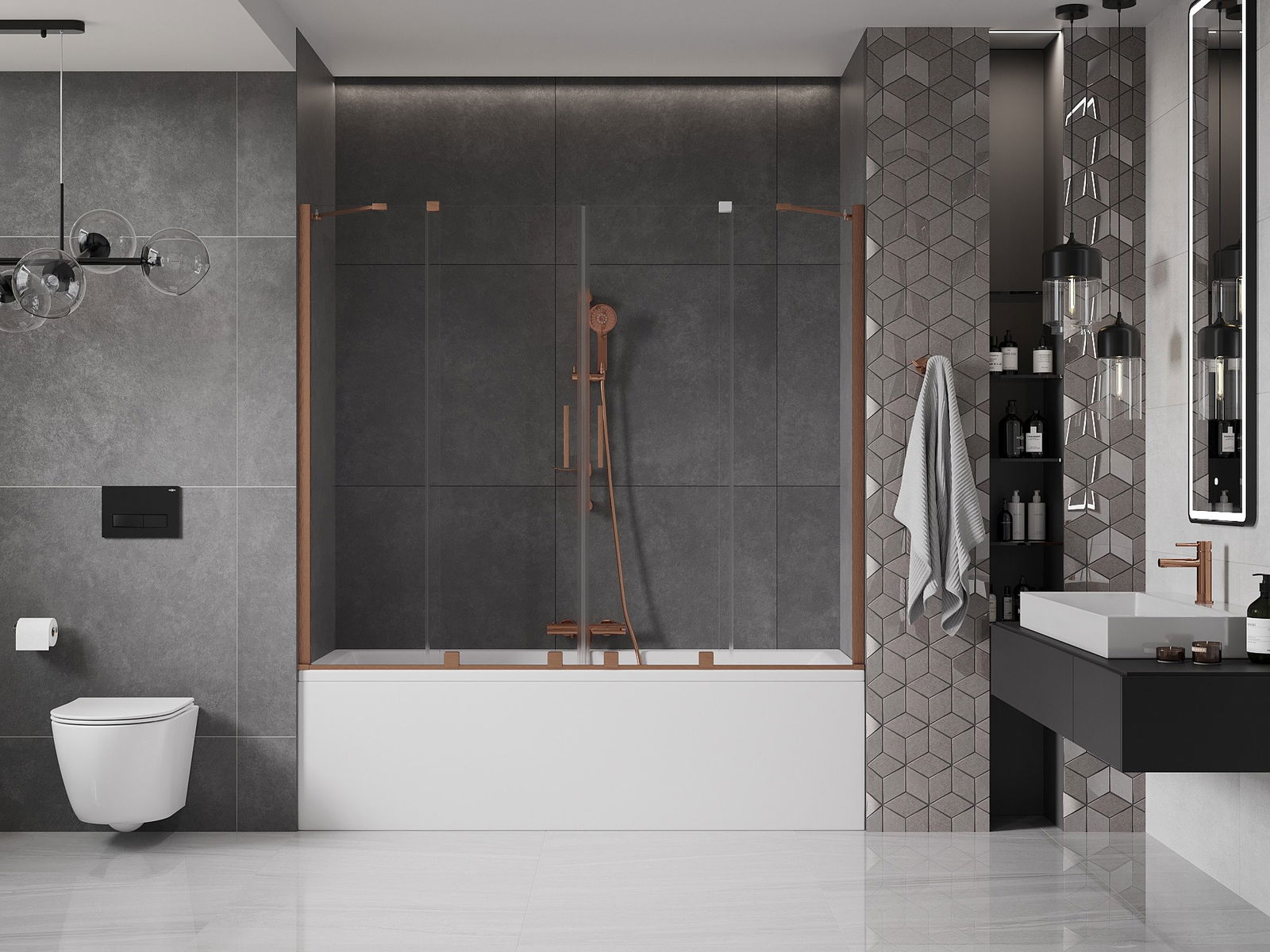 Mexen Velar Duo 2-wing sliding bath screen 200 x 150 cm, transparent, brushed copper - 896-200-000-02-65