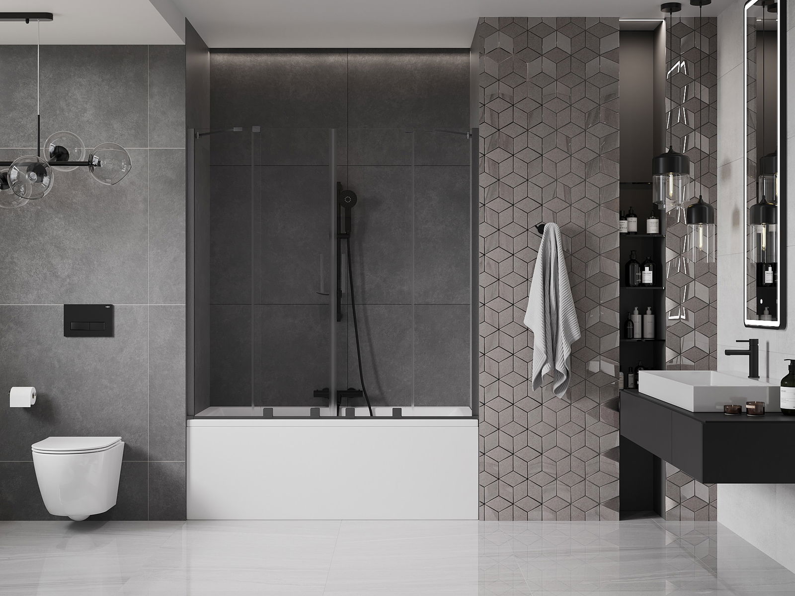 The sliding screen is a practical and space-saving solution as it does not require additional space for opening. Its design is based on a system of guides that allow the leaf to slide smoothly, and built-in rollers provide protection against dirt and limescale build-up on the bearing components.