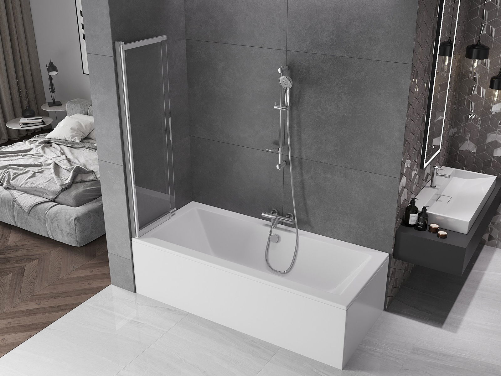 The sliding screen is a practical and space-saving solution as it does not require additional space for opening. Its design is based on a system of guides that allow the leaf to slide smoothly, and built-in rollers provide protection against dirt and limescale build-up on the bearing components.