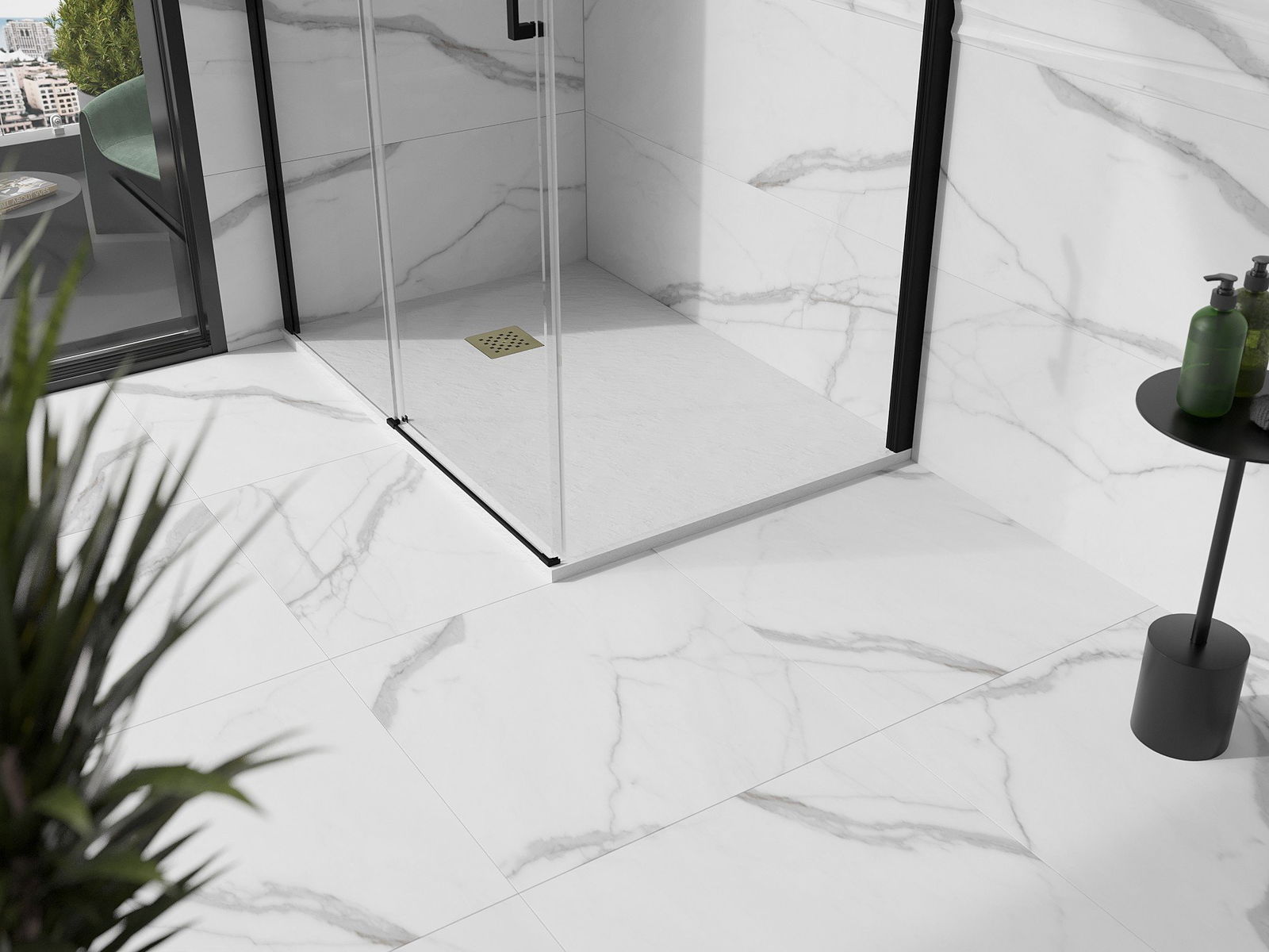 Mexen Stone+ rectangular composite shower tray 130 x 90 cm, white, gold cover - 44109013-G