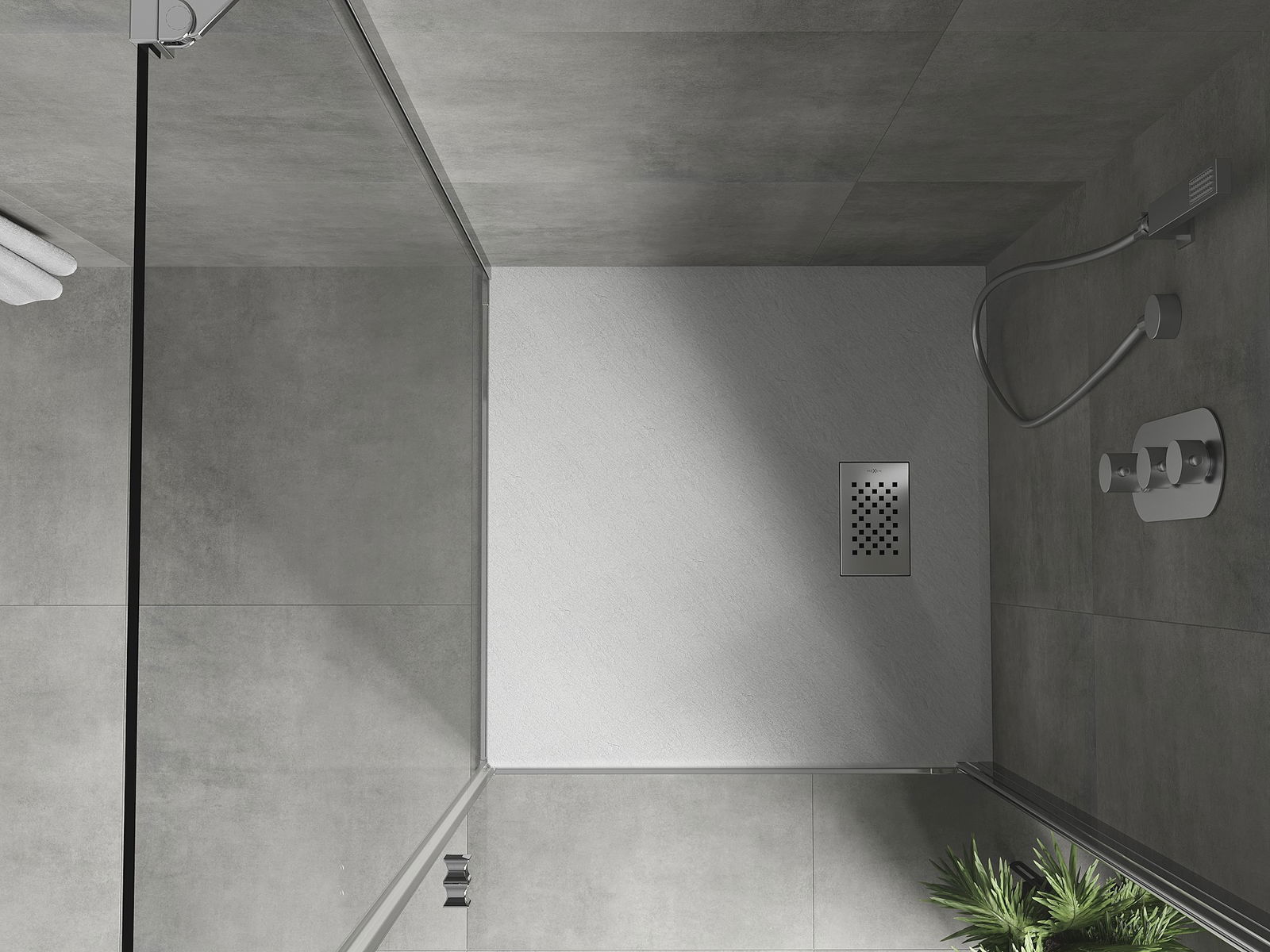 The shower tray is designed in such a way that water can freely flow towards the drain. It ensures quick and effective drainage of water from the surface of the shower tray, preventing the formation of puddles and flooding the bathroom.