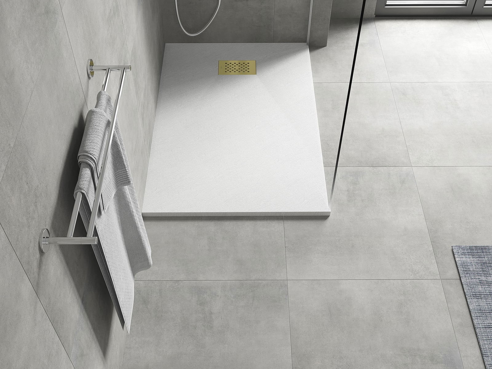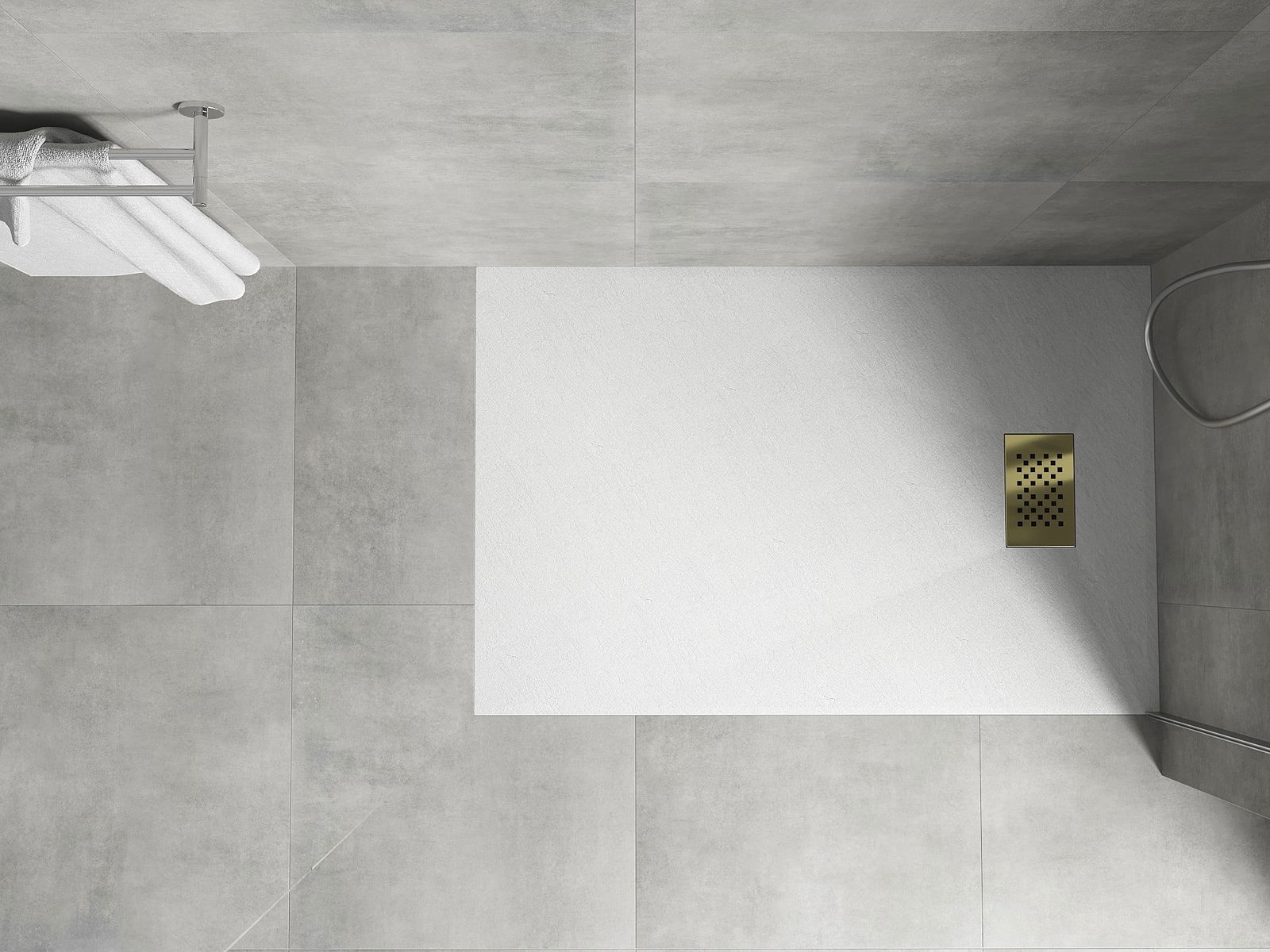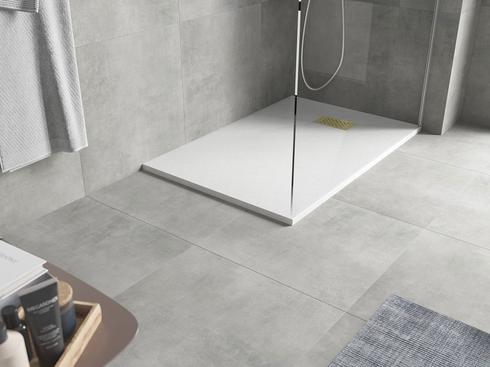The surface of the shower tray resembles stone in its structure. It is a unique combination of a natural appearance with modern interior design. It adds character, enhances the aesthetics and elegance of the bathroom decor, and delights with its form.