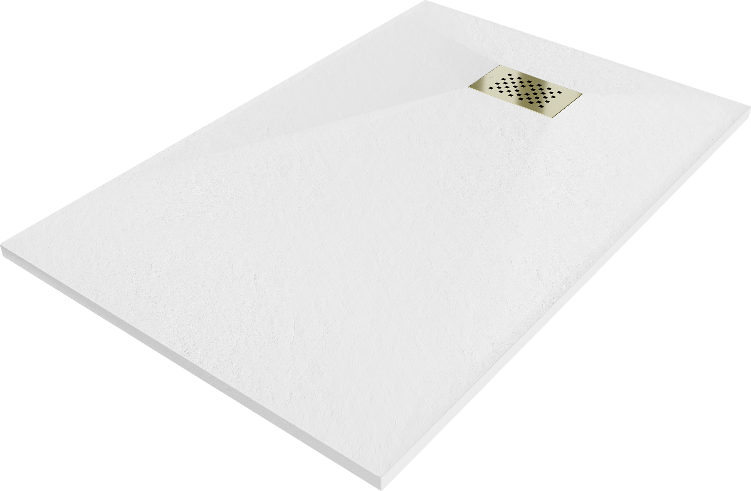 Mexen Hugo rectangular SMC shower tray 130 x 70 cm, white, gold cover - 42107013-G