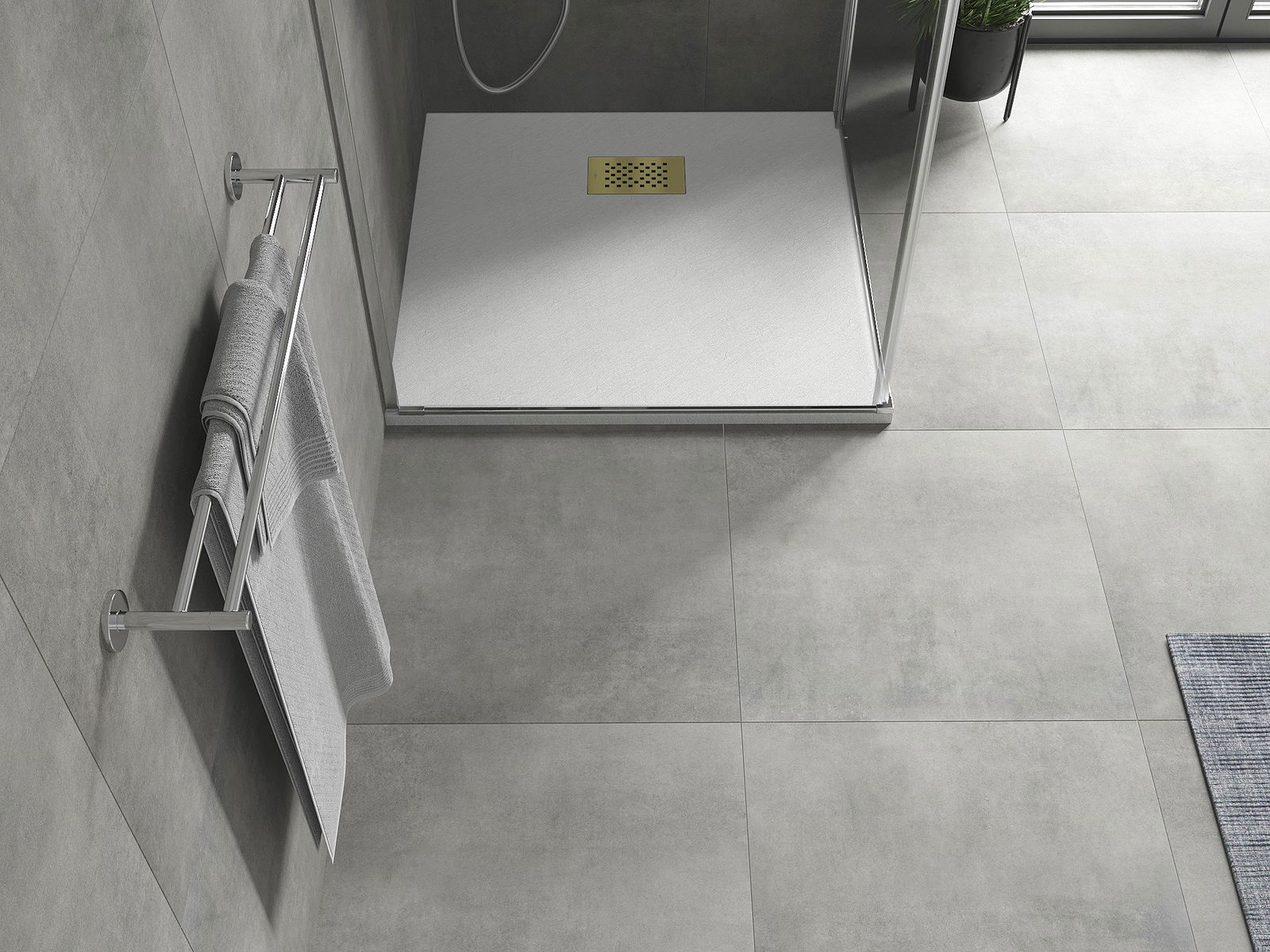 The shower tray has a low threshold, which makes it easier to enter and leave the shower. It adds a unique and timeless finish to the room, making the bathroom a comfortable and aesthetic place of daily relaxation.