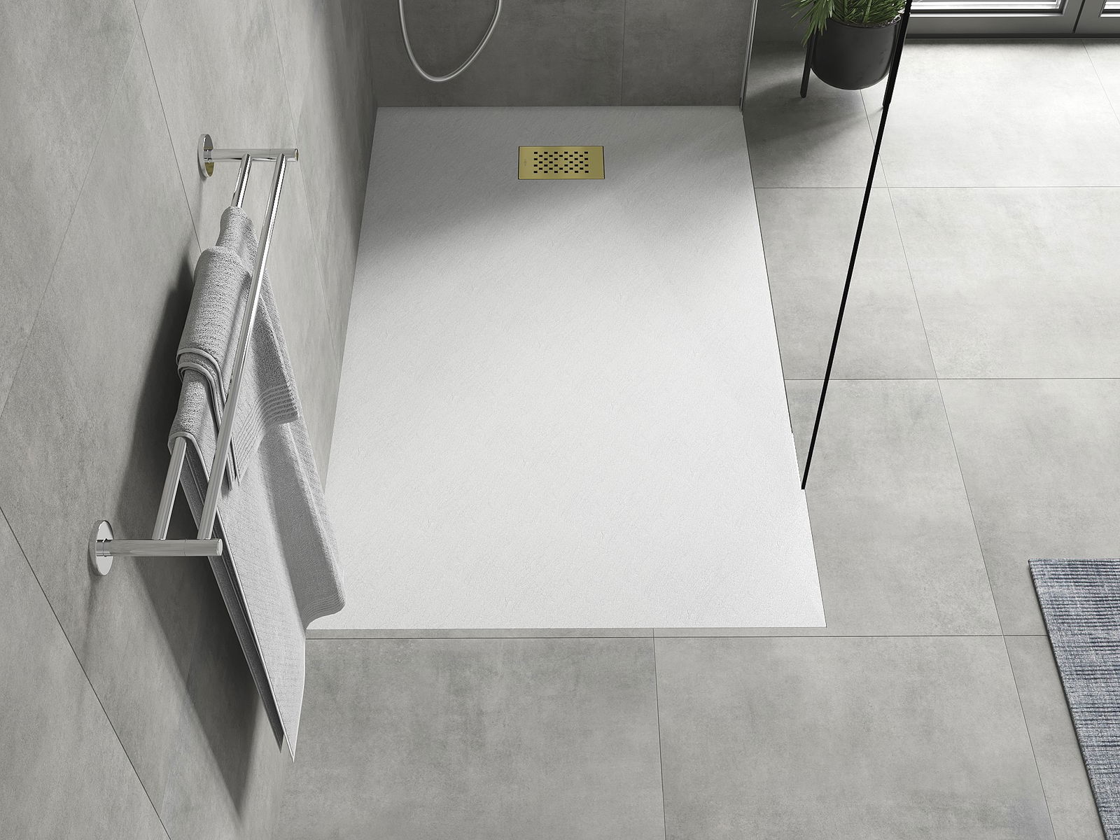 Mexen Hugo rectangular SMC shower tray 140 x 90 cm, white, gold cover - 42109014-G