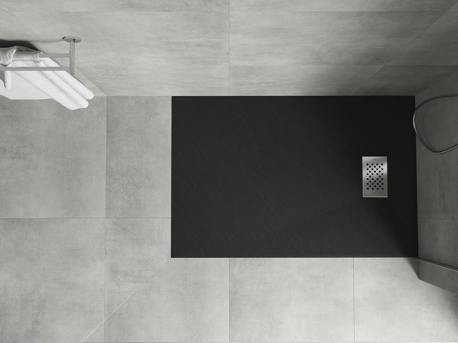 Mexen Hugo rectangular SMC shower tray 80 x 70 cm, black, inox cover - 42707080-X