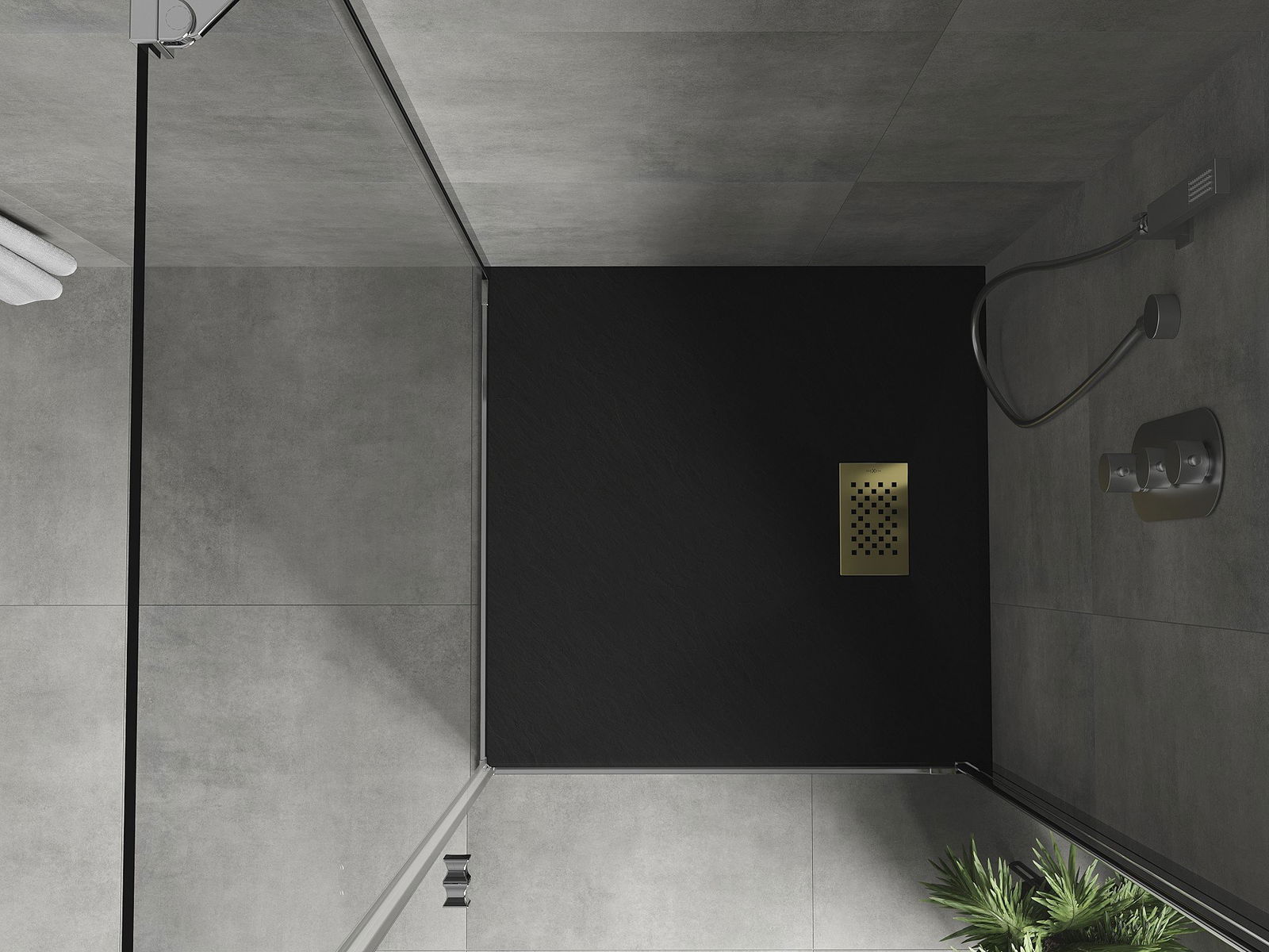 Mexen Hugo SMC Square Shower Tray 70 x 70 cm, Black, Gold Cover - 42707070-G