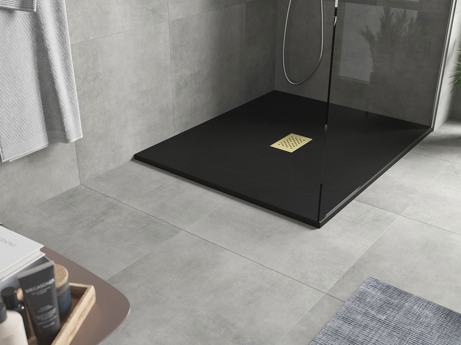 Mexen Hugo SMC Rectangular Shower Tray 120 x 100 cm, Black, Gold Cover - 42701012-G