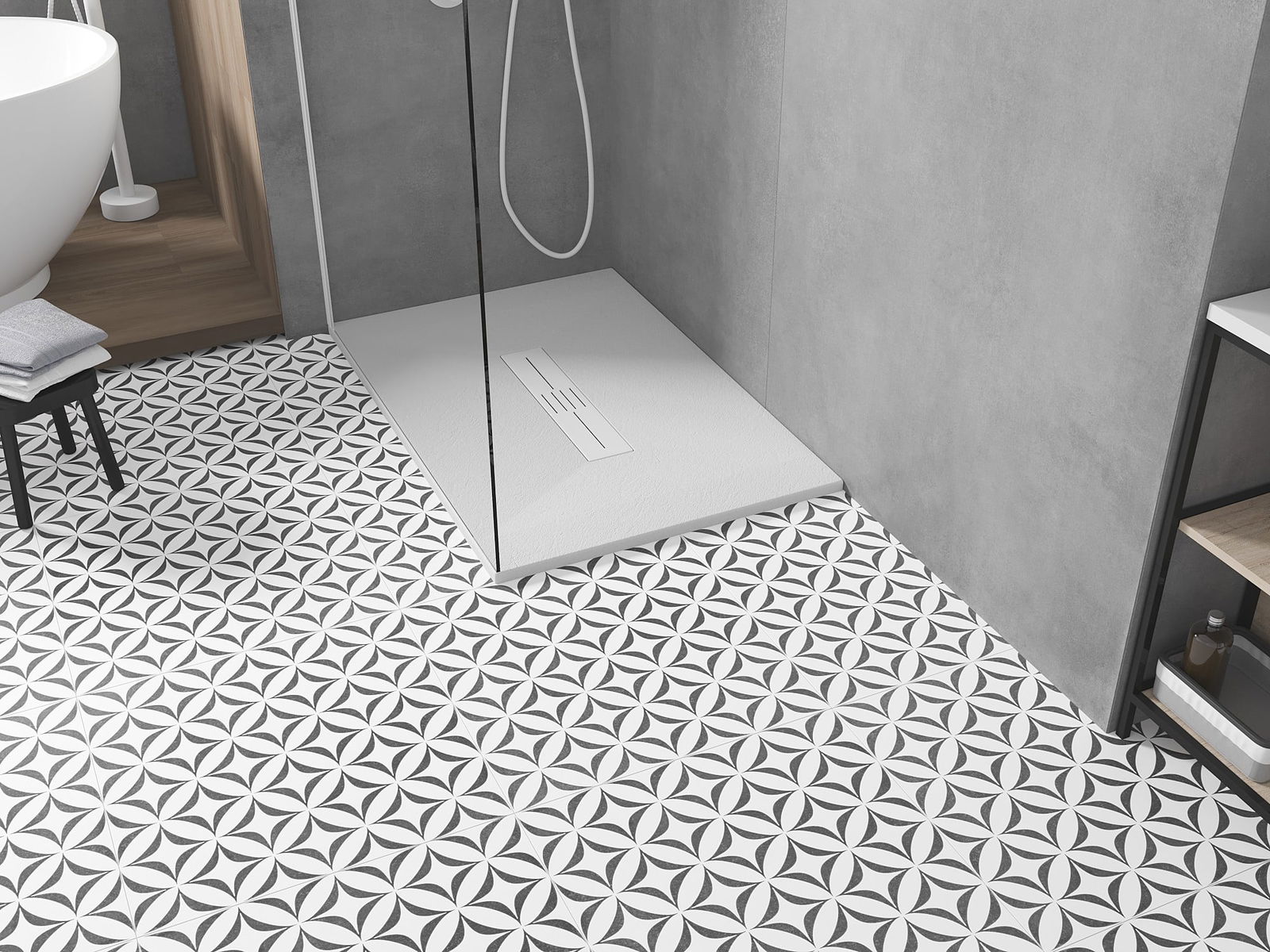 The low height of the shower tray allows for traditional installation on the floor or embedding into the floor, creating a unique, seamless surface. The flexibility of installation allows the shower tray to be adapted to different interior designs.