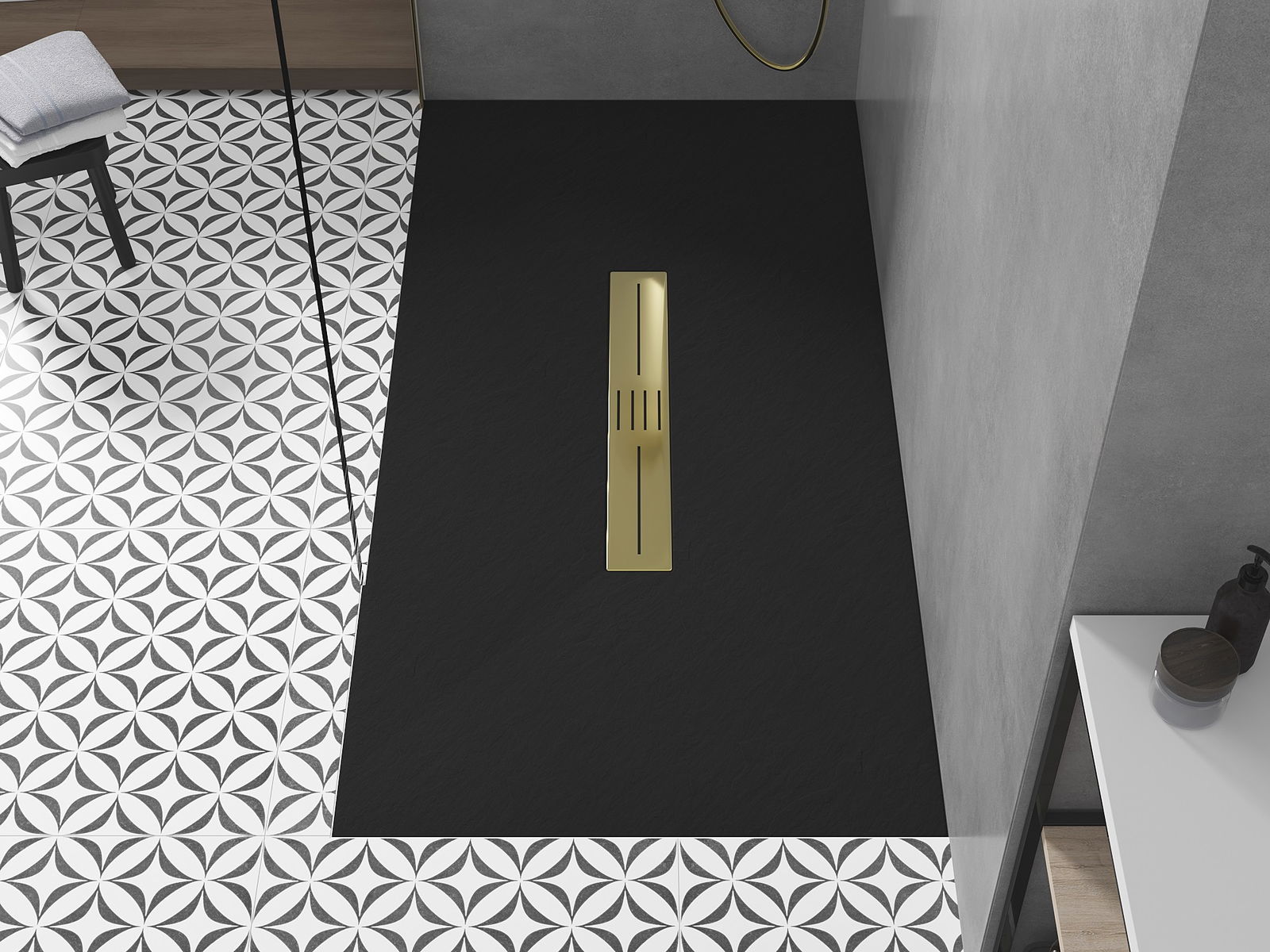 The shower tray has a low threshold, which makes it easier to enter and leave the shower. It adds a unique and timeless finish to the room, making the bathroom a comfortable and aesthetic place of daily relaxation.