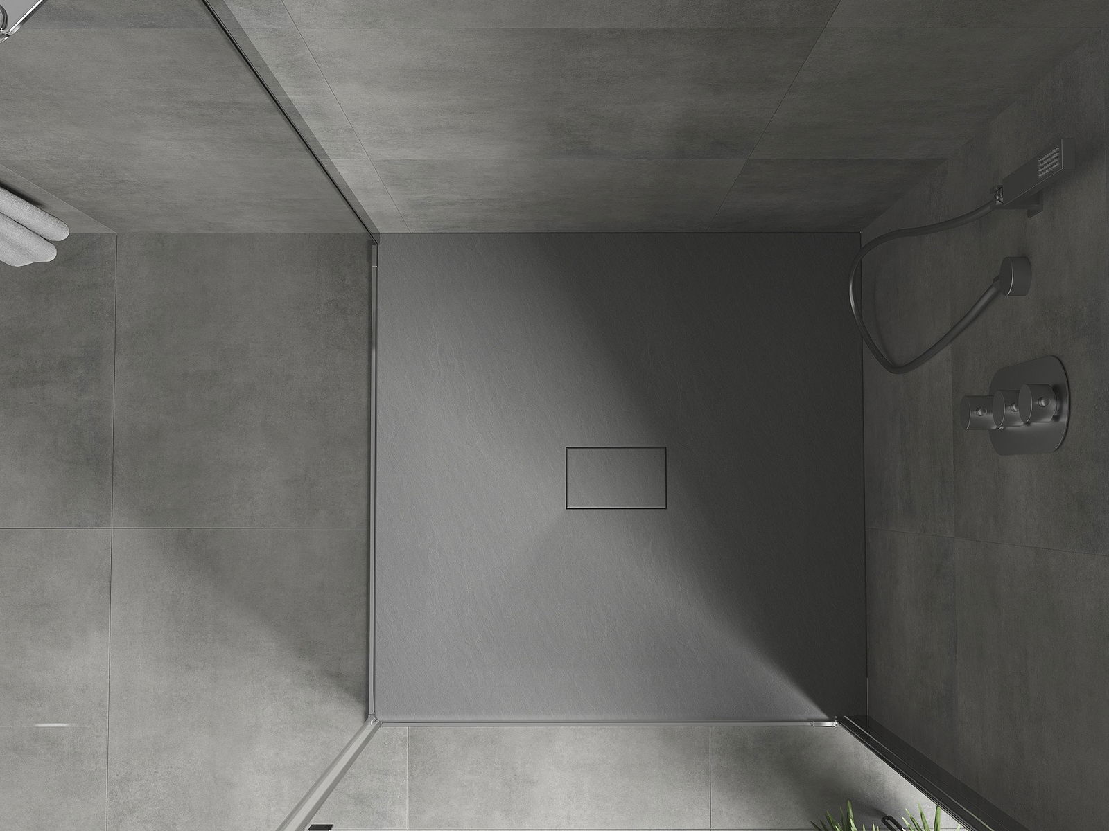 The surface of the shower tray resembles a stone with its structure. It is a unique combination of natural appearance with a modern interior arrangement. It adds character, emphasizes the aesthetics and elegance of the bathroom decor and impresses with its form.