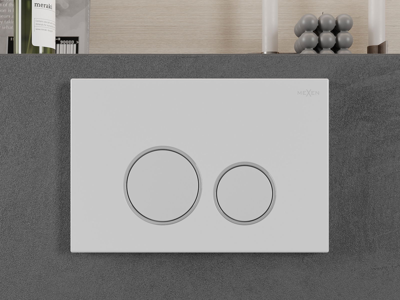 Flushing is activated in the traditional way – pressing the button activates a lever that opens the valve and flushes the water. It is a simple and intuitive solution, commonly found in bathrooms.