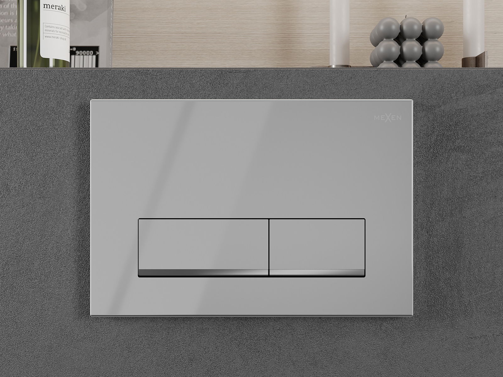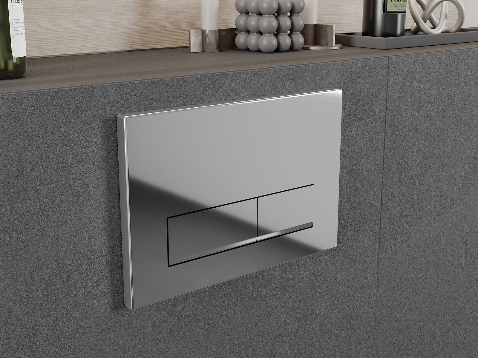Flushing is activated in the traditional way – pressing the button activates a lever that opens the valve and flushes the water. It is a simple and intuitive solution, commonly found in bathrooms.