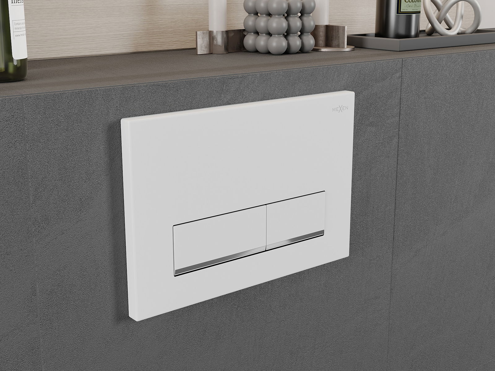 The button fits the frame from the Mexen Fenix Slim series, in which it is possible to install from the front. A popular and practical solution especially in bathrooms, where access to the button from the front is more comfortable.