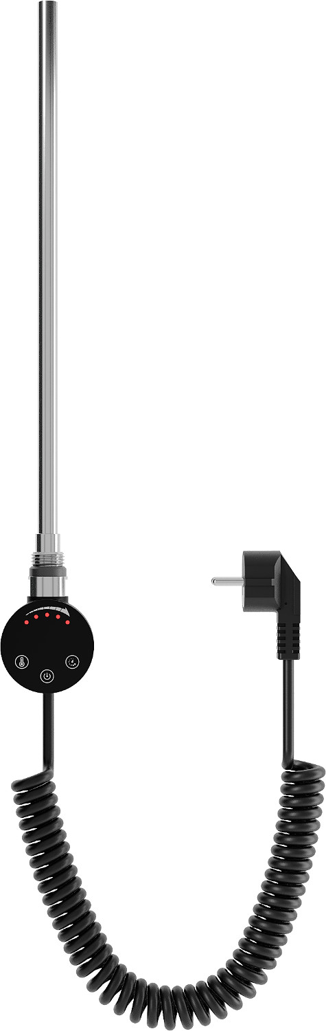 Mexen FA-O 900 W electric heater, black, combines modern design with high functionality. With a power of 900 W and operating voltage of 230V/50 Hz, it provides efficient heating. It has a 1.5 m connection cable and G 1/2" thread. Protection rating IP44 and additional protection against dry operation ensure safe use. Features such as temperature setting accuracy up to 5°C, drying option, and alarm state signaling guarantee convenience and safety.