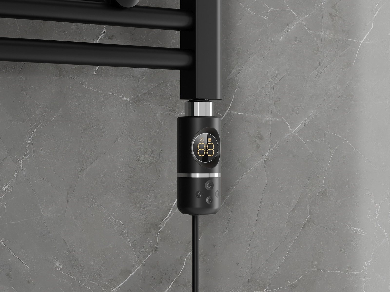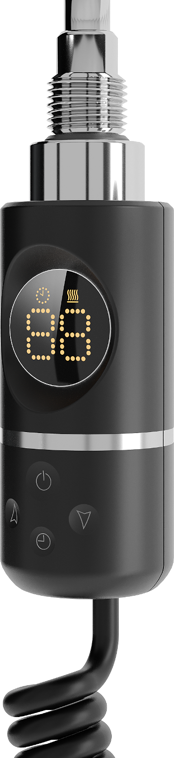 The Mexen FA-I 300 W electric heater, black, offers many advantages such as a total length of 426 mm and a heating element length of 310 mm, providing convenient use. The black color adds elegance, while the 300 W heating power ensures effective heating. The heater operates on 230V/50 Hz voltage and has a 1.5 m connection cable. The heater thread is G 1/2", and the protection level IP44 ensures safety. Additional features include an LED display and functions such as Sensitive, Comfort, and parental lock.
