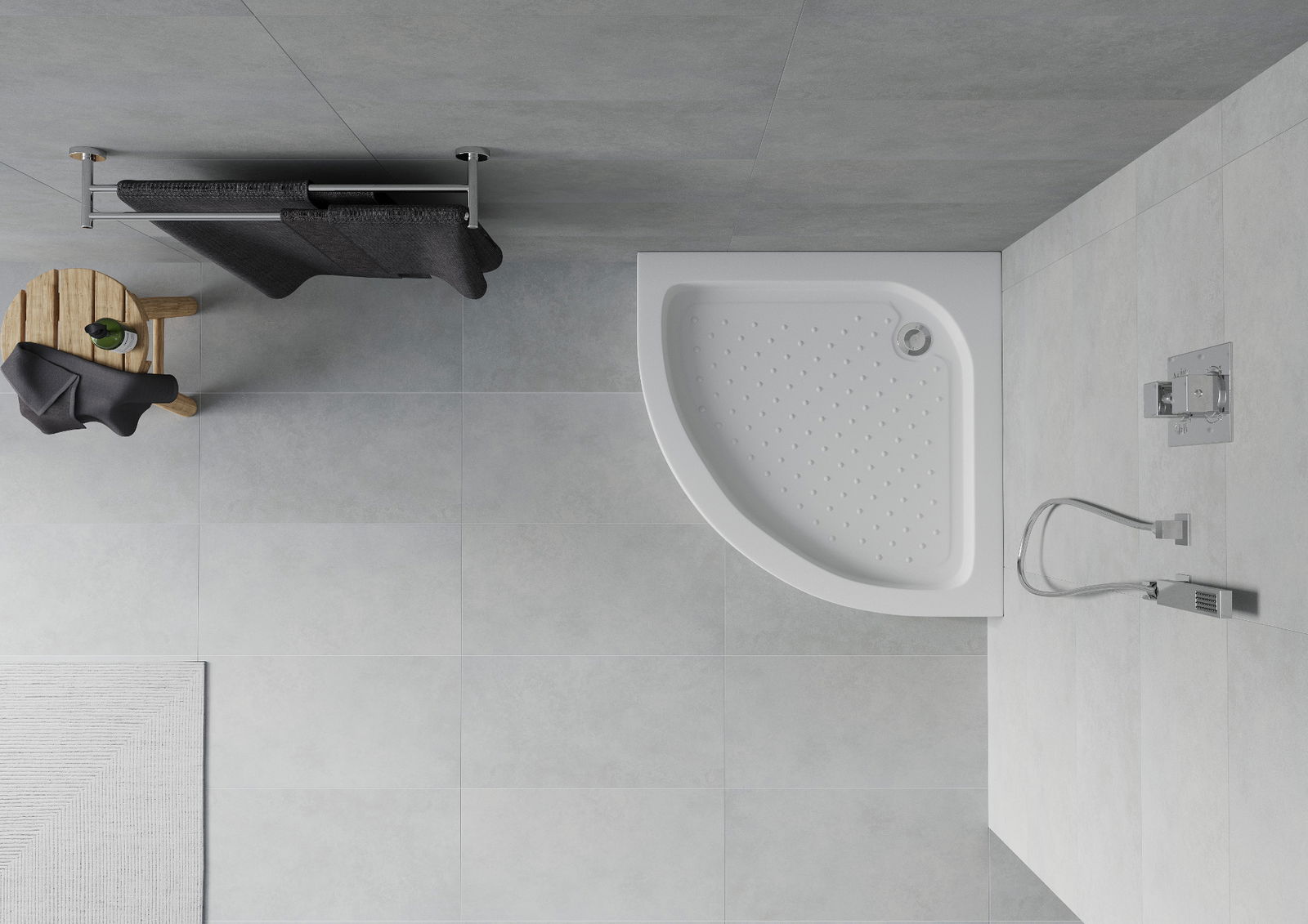 Mexen Rio is a semi-circular shower tray with dimensions of 80 x 80 cm and a height of 14 cm, made from sanitary acrylic. Its elegant white colour and glossy surface perfectly fit any bathroom. The tray has a reinforced construction and a siphon that can be easily cleaned from the top. With a drain diameter of 50 mm, it ensures efficient water drainage. Choosing Mexen Rio guarantees functionality and modern style in your bathroom.