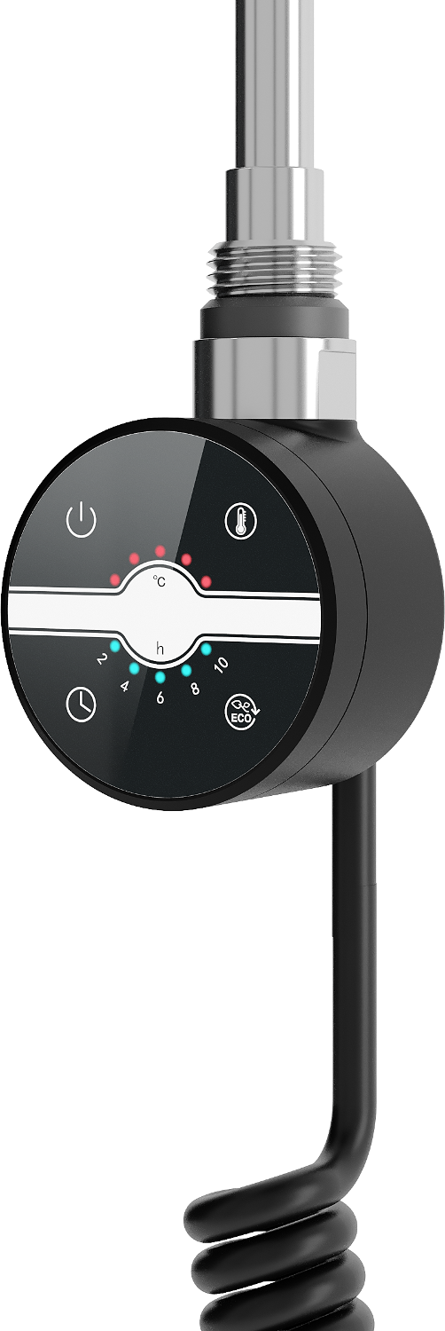 Mexen FA-D22 is a black electric heater with a power of 300 W, ideal for various applications. The total length is 384 mm, and the length of the heating element is 310 mm. The product operates at 230V/50 Hz and has a connection cable with a length of 1.5 m. The heater thread is G 1/2", and the protection level is IP44. Equipped with an LED indicator showing the operating mode and additional protection against dry operation. Functions such as Sensitive, Comfort, ECO, and Anti-frost provide precise temperature setting, energy saving, and protection against freezing.