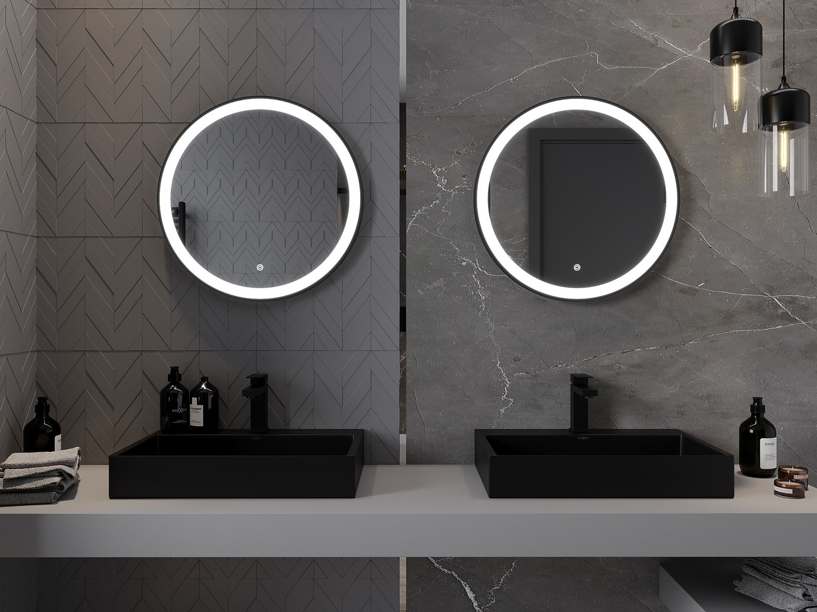 Mexen Esso illuminated bathroom mirror, round 60 cm, LED 6000K, anti-fog, black frame - 9825-060-060-611-70