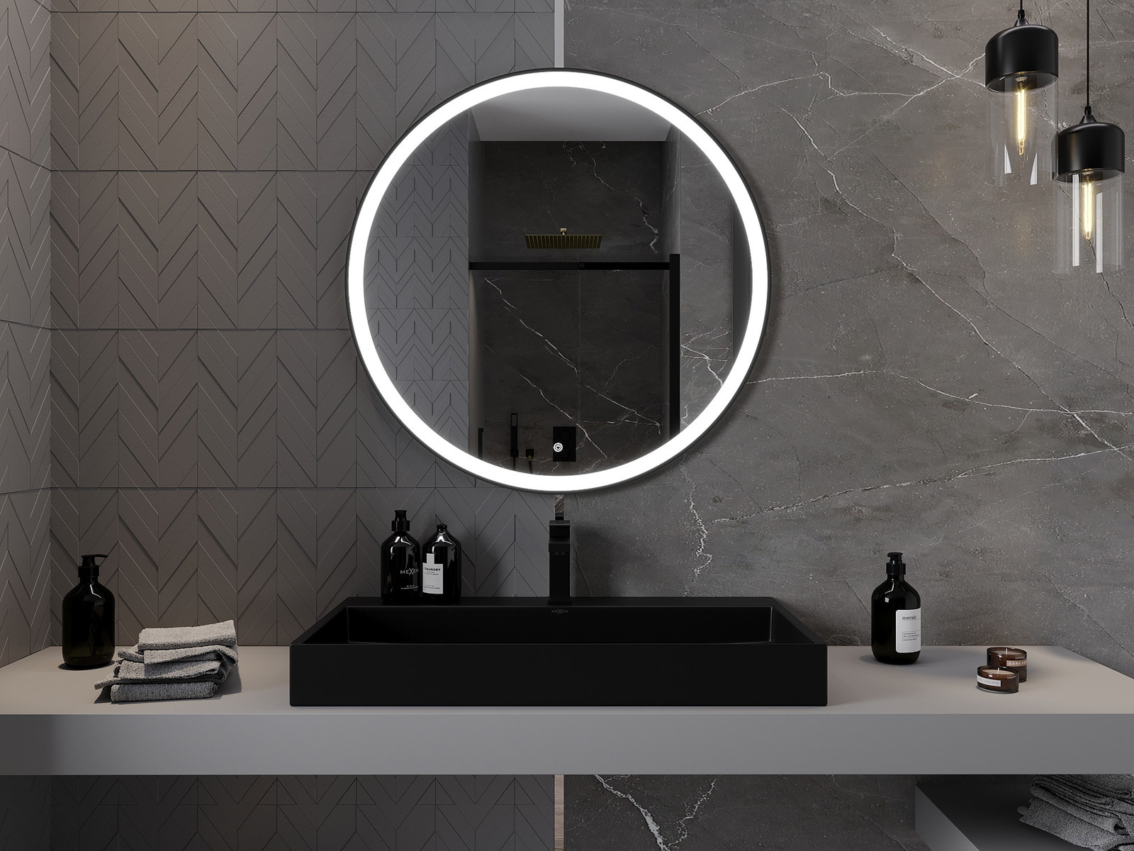 Mexen Esso illuminated bathroom mirror, round 90 cm, LED 6000K, anti-fog, black frame - 9825-090-090-611-70