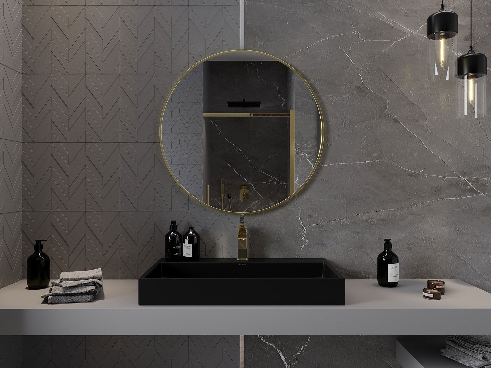 Mexen Loft round bathroom mirror 80 cm, gold frame - 9850-080-080-000-50