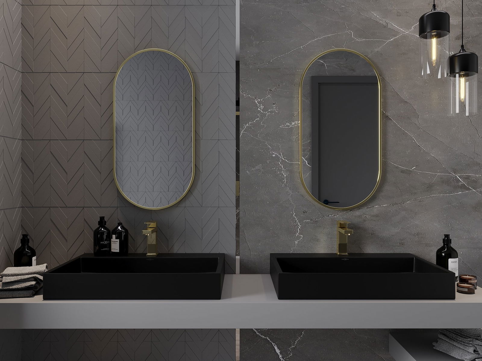 Mexen Loft oval bathroom mirror 80 x 40 cm, gold frame - 9851-080-040-000-50