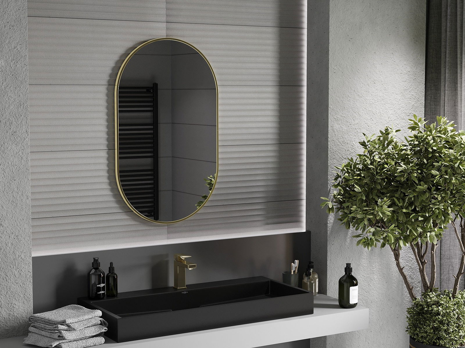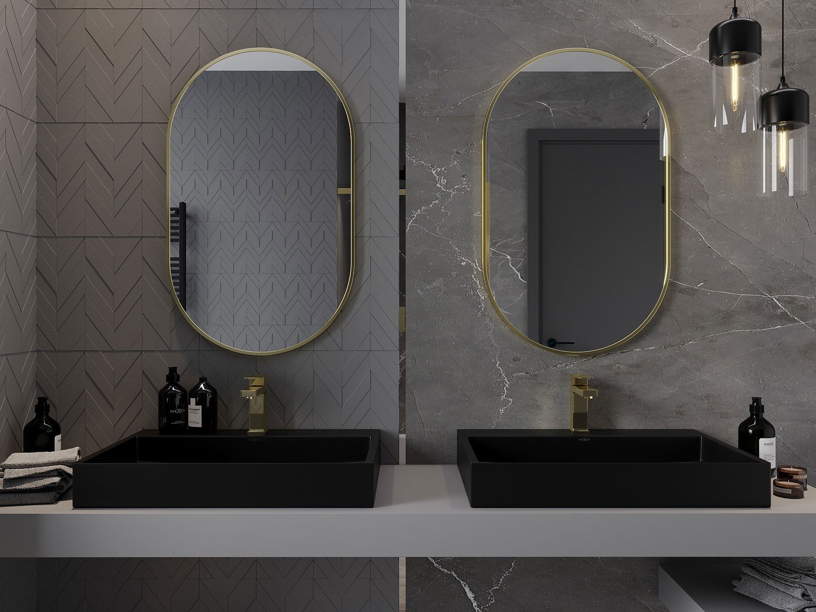 Mexen Loft oval bathroom mirror 90 x 55 cm, gold frame - 9851-090-055-000-50