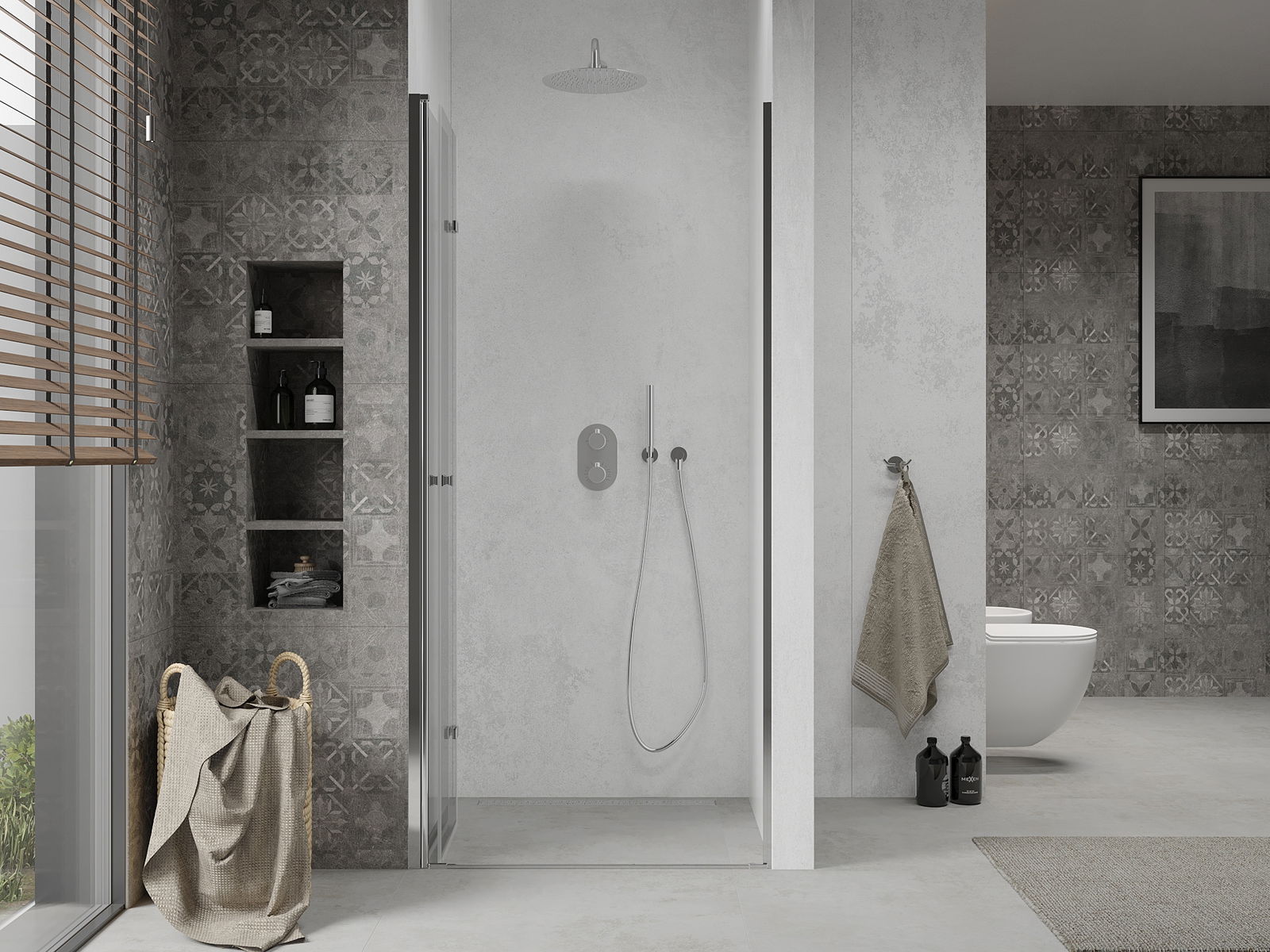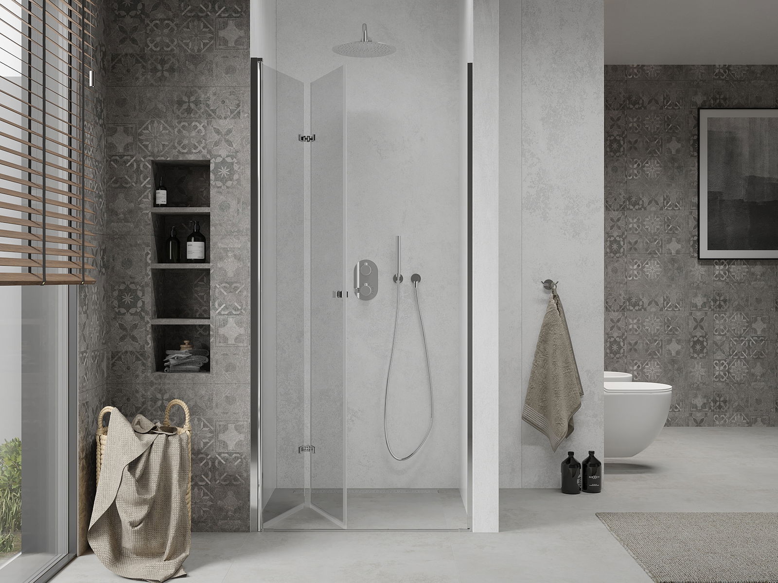 The ability to fold the door, both outside and inside, allows you to get more space when not using the shower. It is an ideal solution for smaller bathrooms, maximally using the available surface.