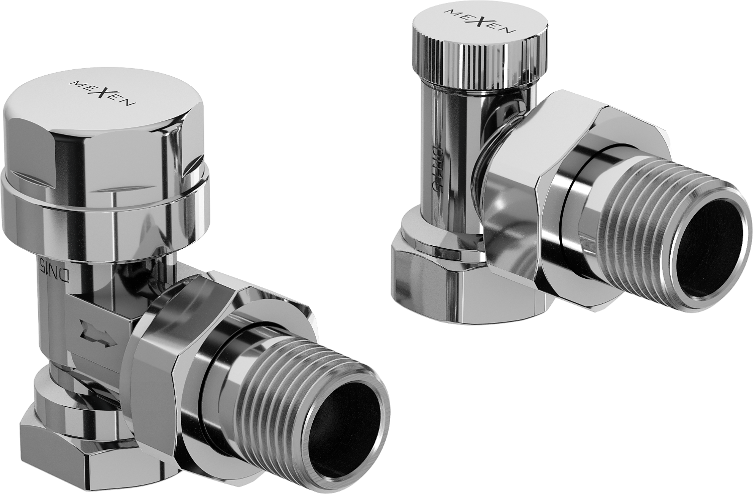 The set includes a supply and shut-off radiator valve