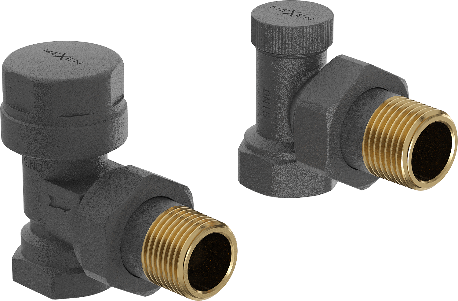 The set includes a supply and shut-off radiator valve