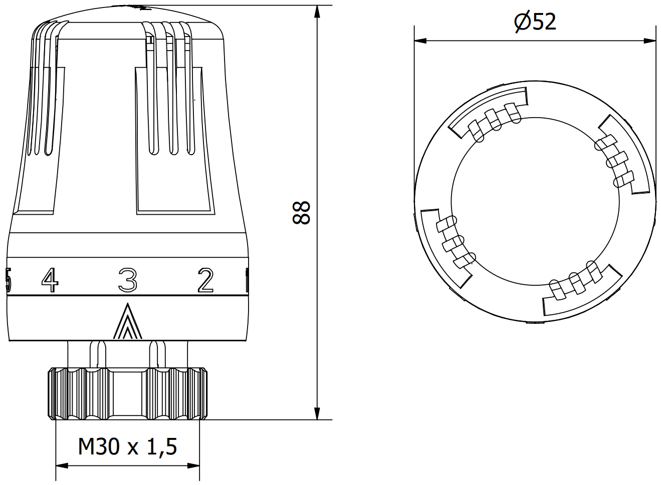 This is a standard thread size used in many thermostatic heads, particularly in devices used in heating systems. The symbol M30 indicates that the outer diameter of the thread is 30 mm, and 1.5 mm denotes the thread pitch is 1.5 mm.