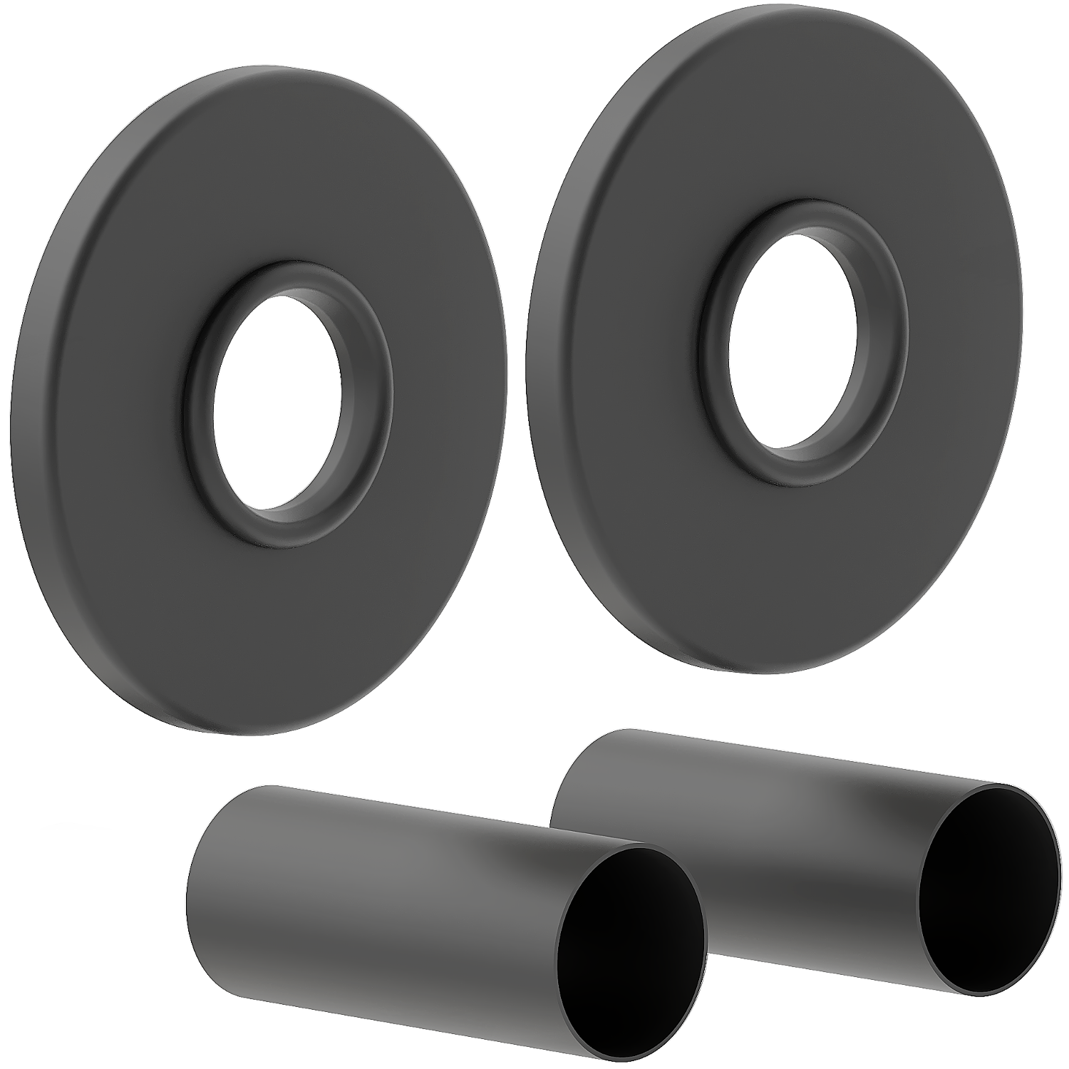 The masking set consists of two single rosettes and sleeves intended for the installation of thermostat sets and radiator valves