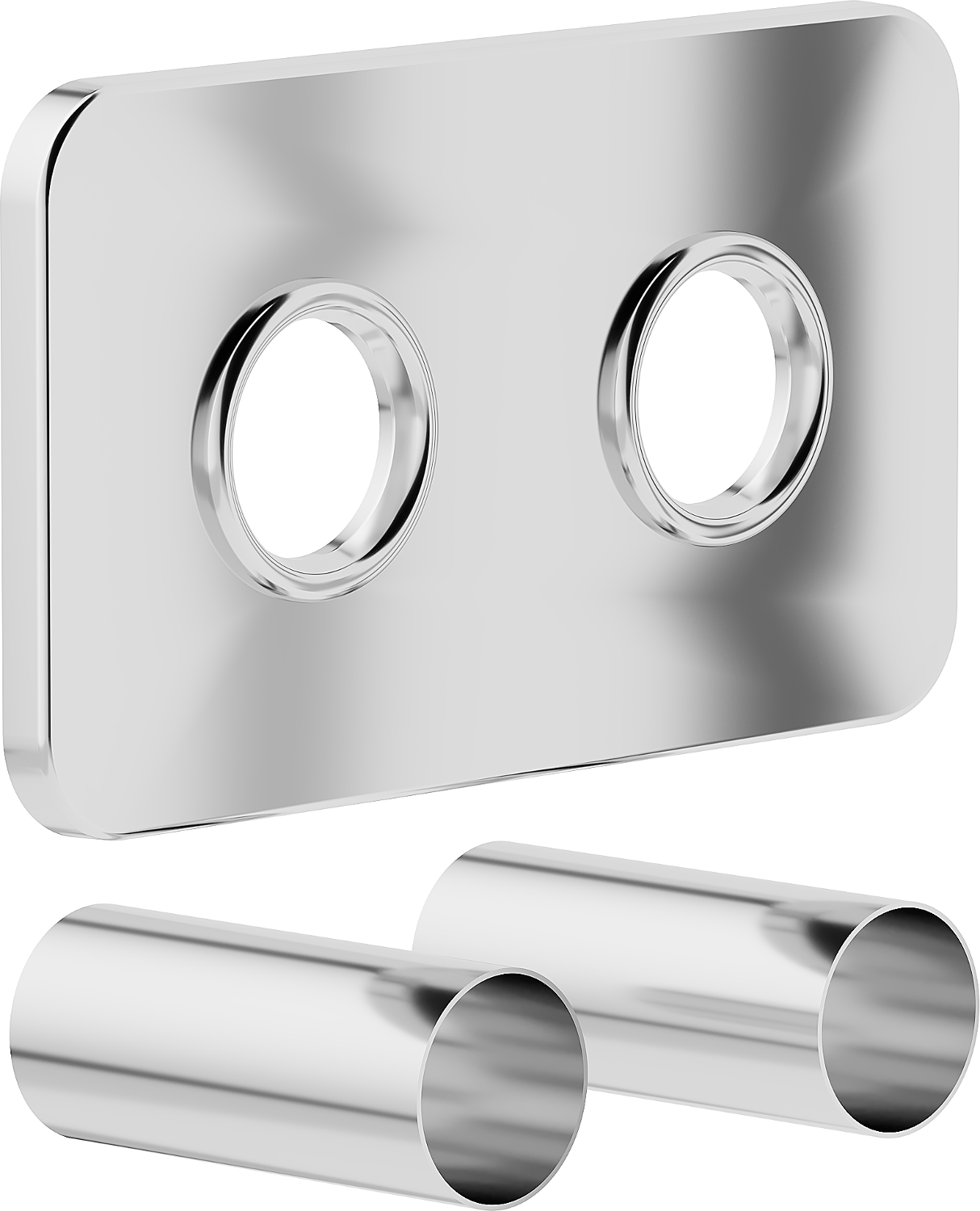The masking set consists of a double rosette and two sleeves intended for the installation of thermostatic sets and radiator valves.