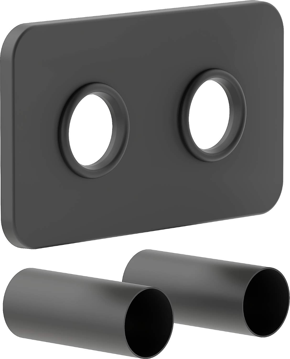 The masking set consists of a double rosette and two bushings designed for the installation of thermostatic sets and radiator valves