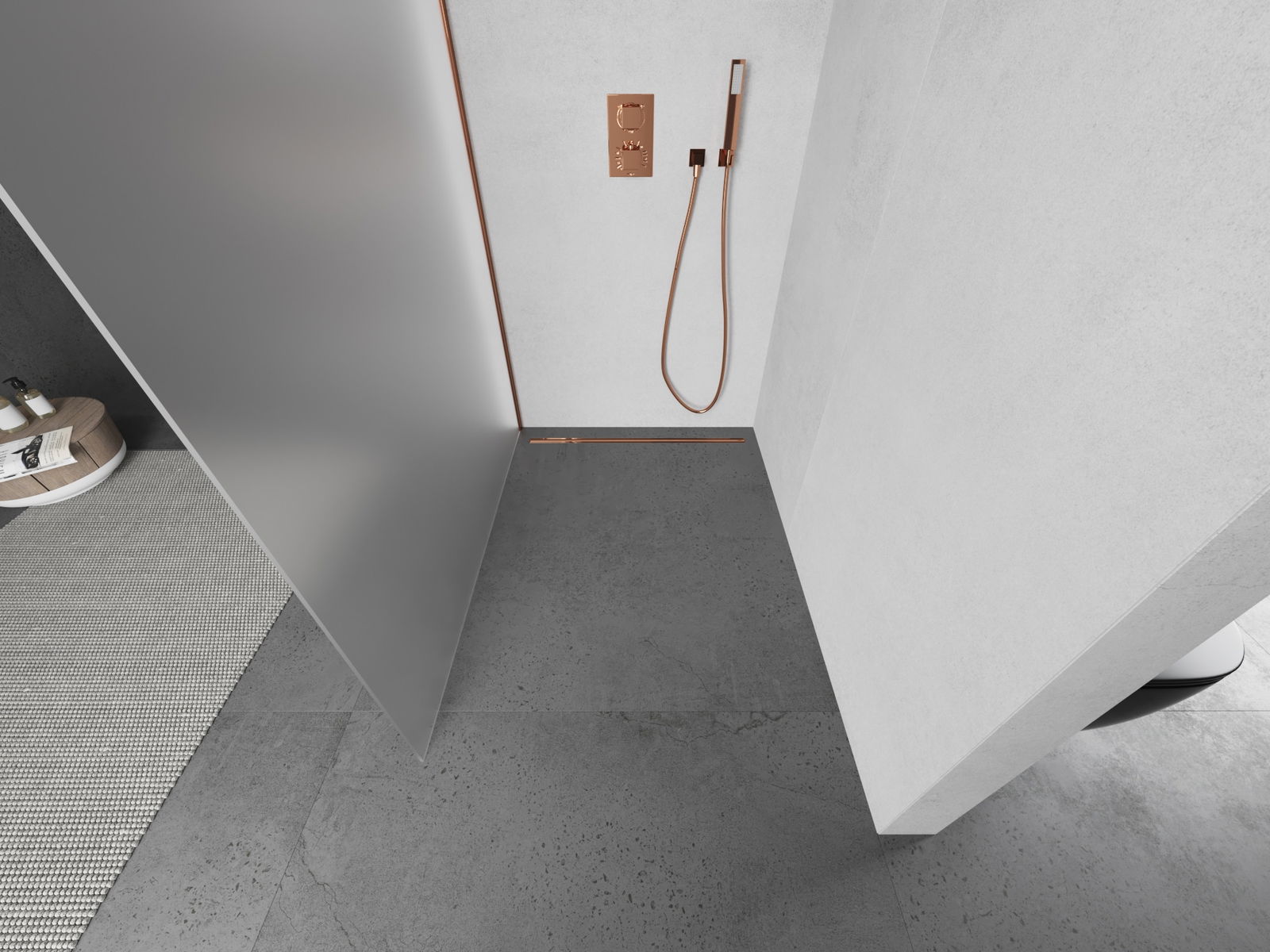Mexen Kioto Walk-in Shower Wall 100 x 200 cm, Frosted 8 mm, Rose Gold - 800-100-101-60-30