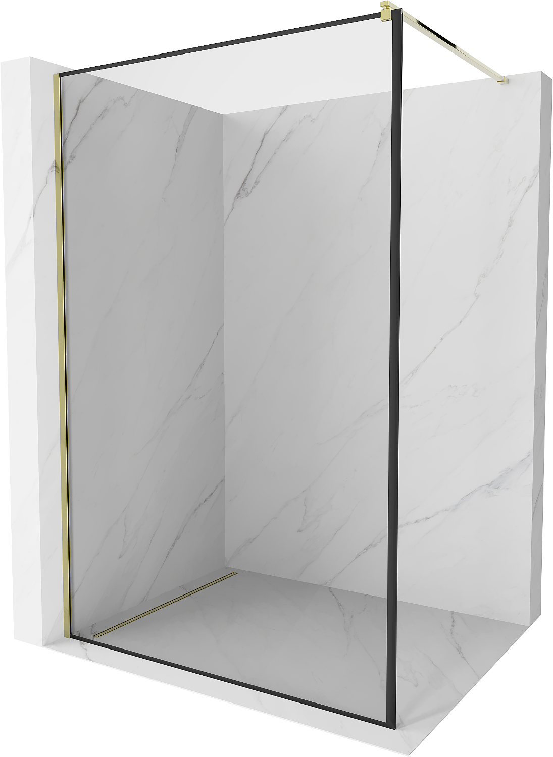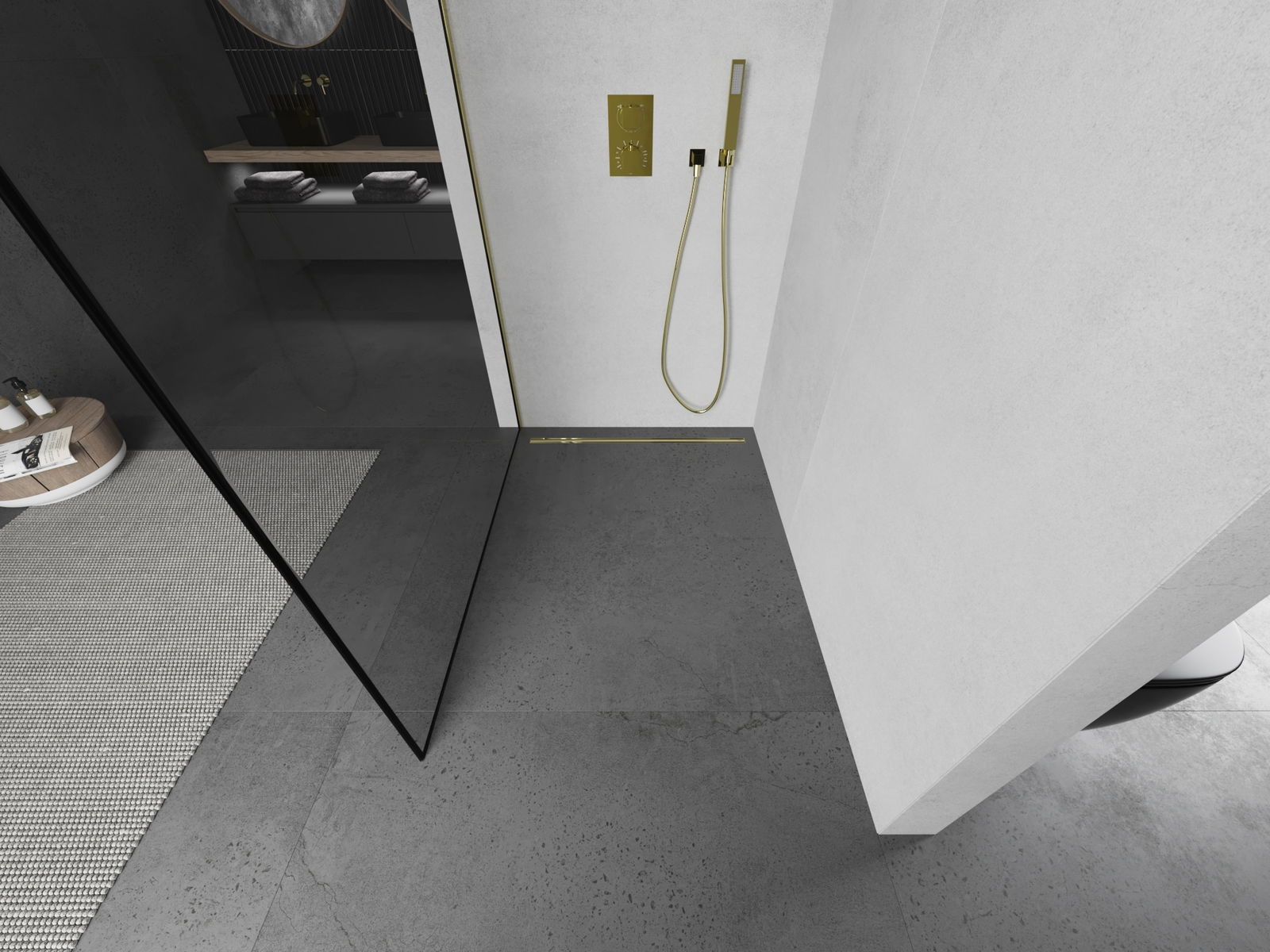 Mexen Kioto Shower Wall Walk-in 70 x 200 cm, Black Frame 8 mm, Gold - 800-070-101-50-70