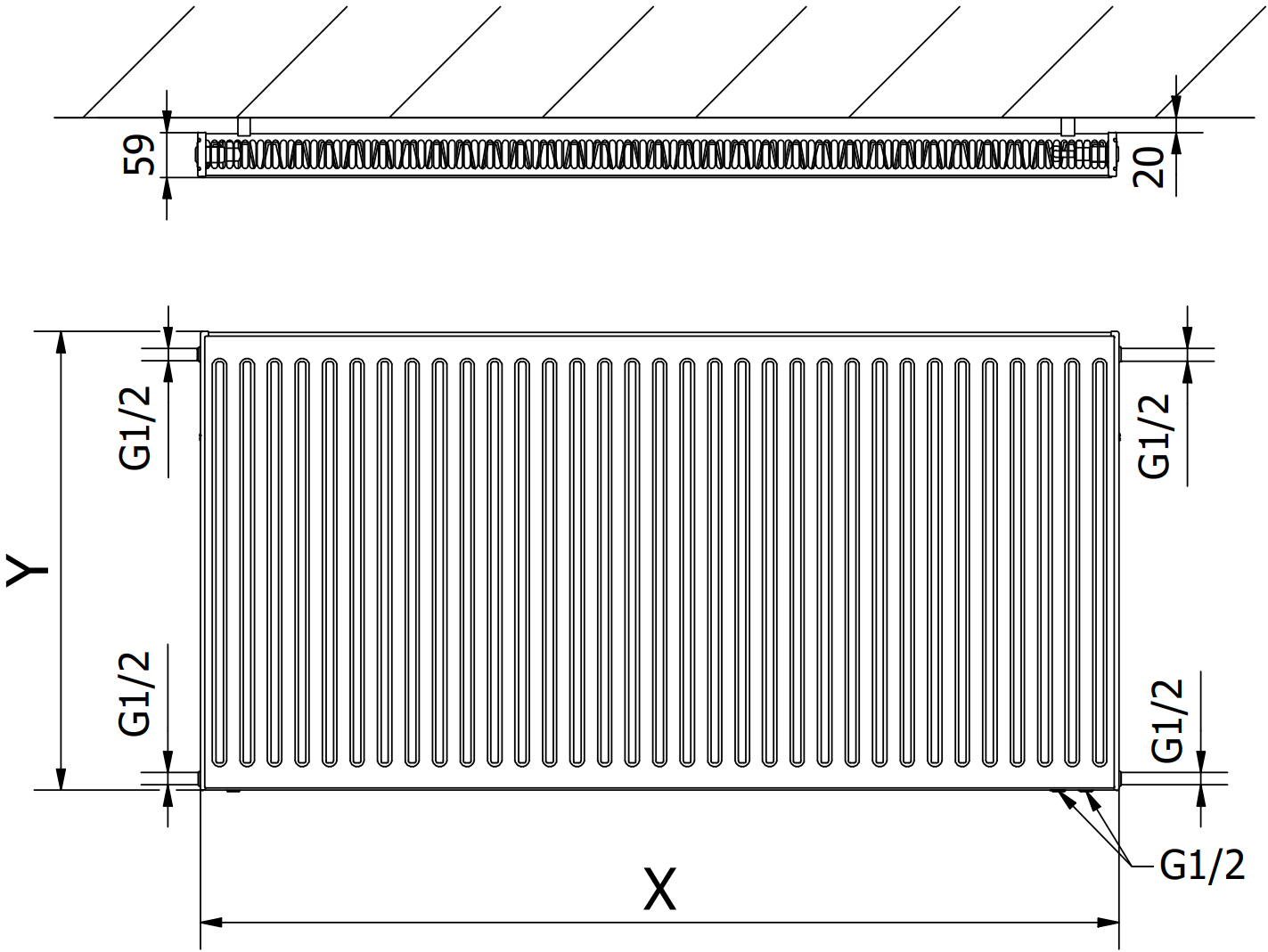- 2xG ½″ from bottom right