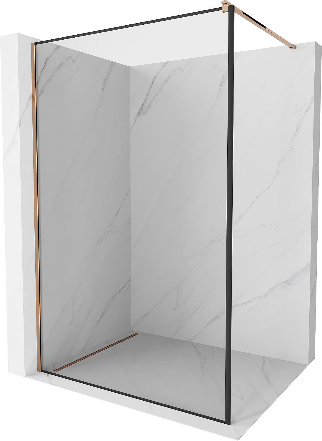 Mexen Kioto Walk-in Shower Wall 100 x 200 cm, Black Frame 8 mm, Rose Gold - 800-100-101-60-70