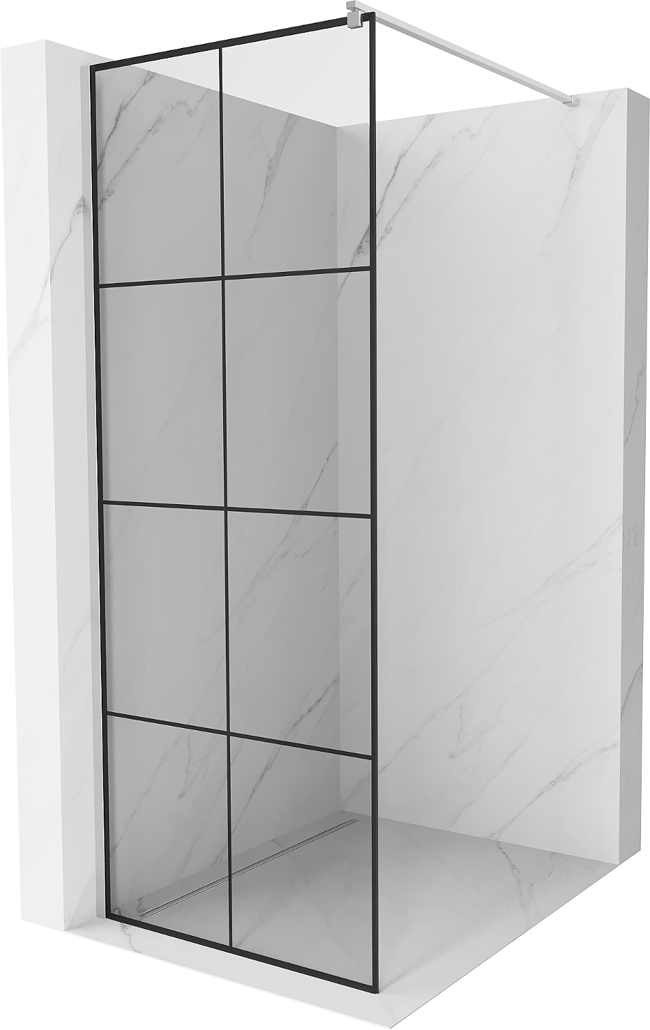 Mexen Kioto Walk-in Shower Wall 70 x 200 cm, Black Grid 8 mm, Chrome - 800-070-101-01-77