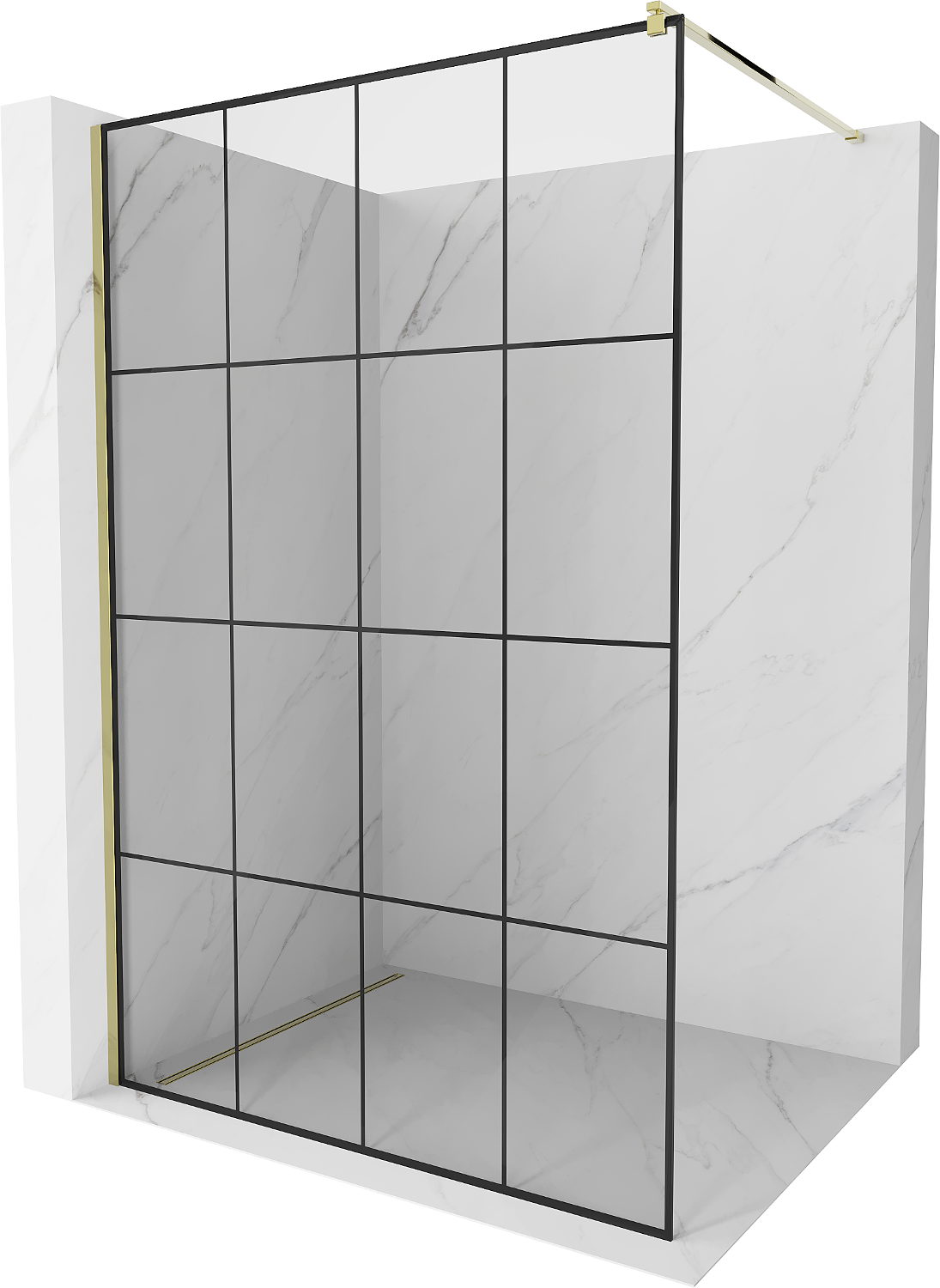 Mexen Kioto Walk-in Shower Wall 140 x 200 cm, Black Grid 8 mm, Gold - 800-140-101-50-77