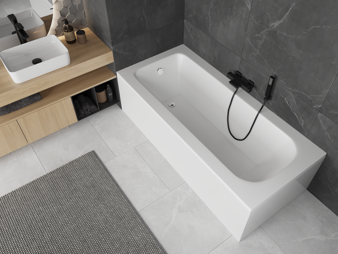 The use of acrylic in the bathroom is a very practical solution. Acrylic maintains the water temperature well, preventing it from cooling down quickly. It also has acoustic properties, reducing noise in the bathroom.