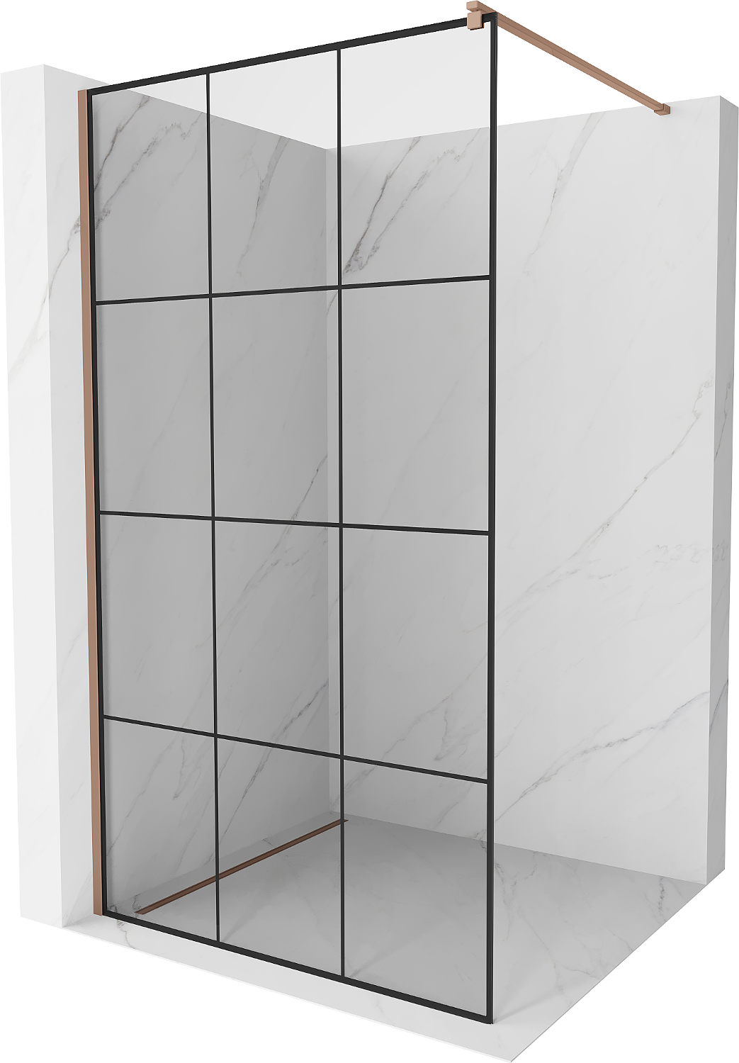 Mexen Kioto Walk-in Shower Panel 120 x 200 cm, 8 mm Black Grid, Rose Gold - 800-120-101-60-77