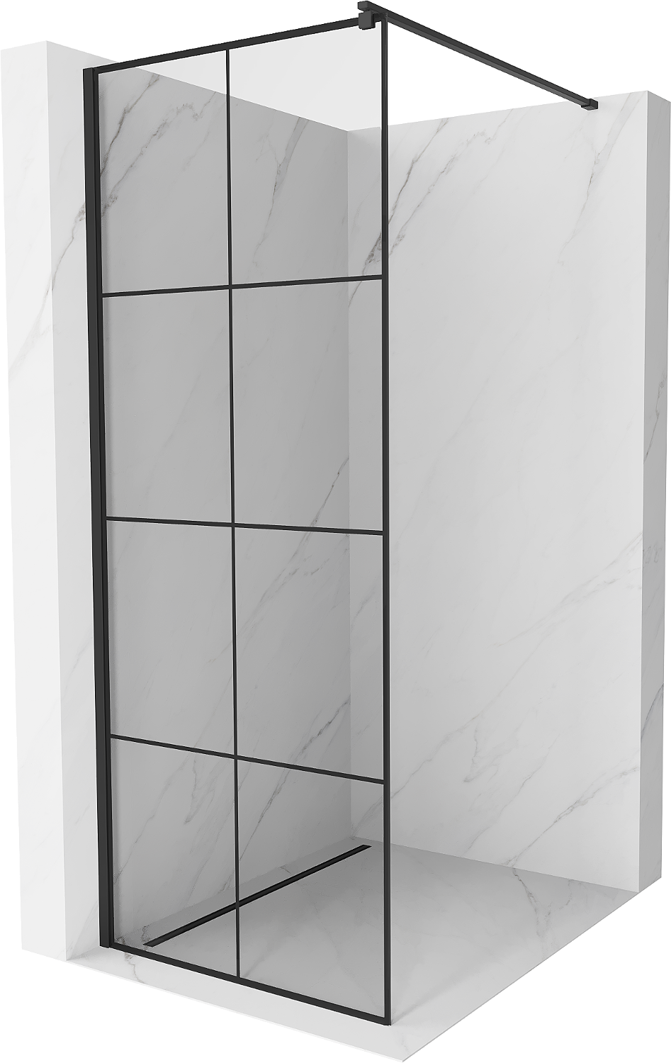 Mexen Kioto Walk-in Shower Wall 80 x 200 cm, Black Grid 8 mm, Black - 800-080-101-70-77